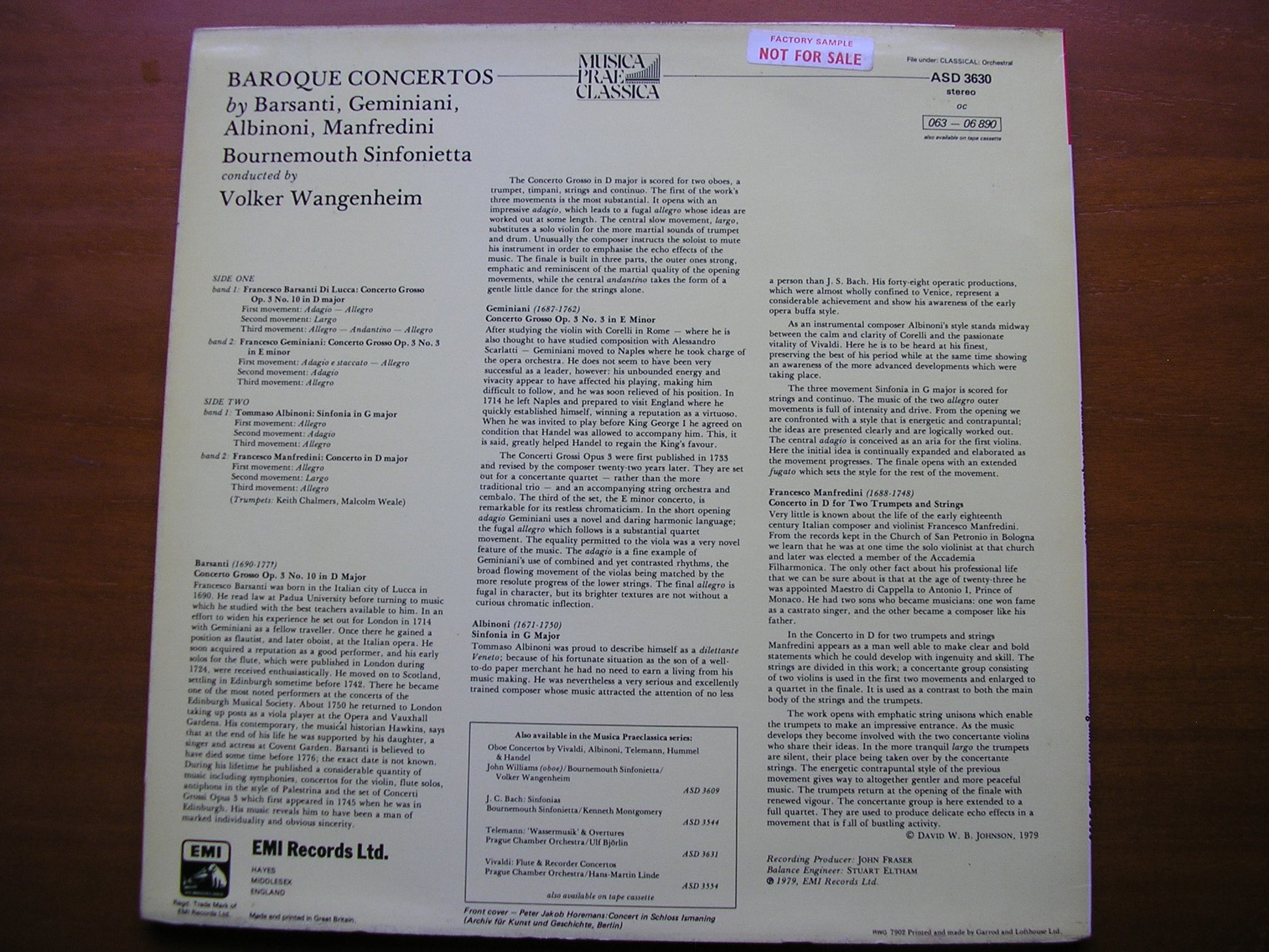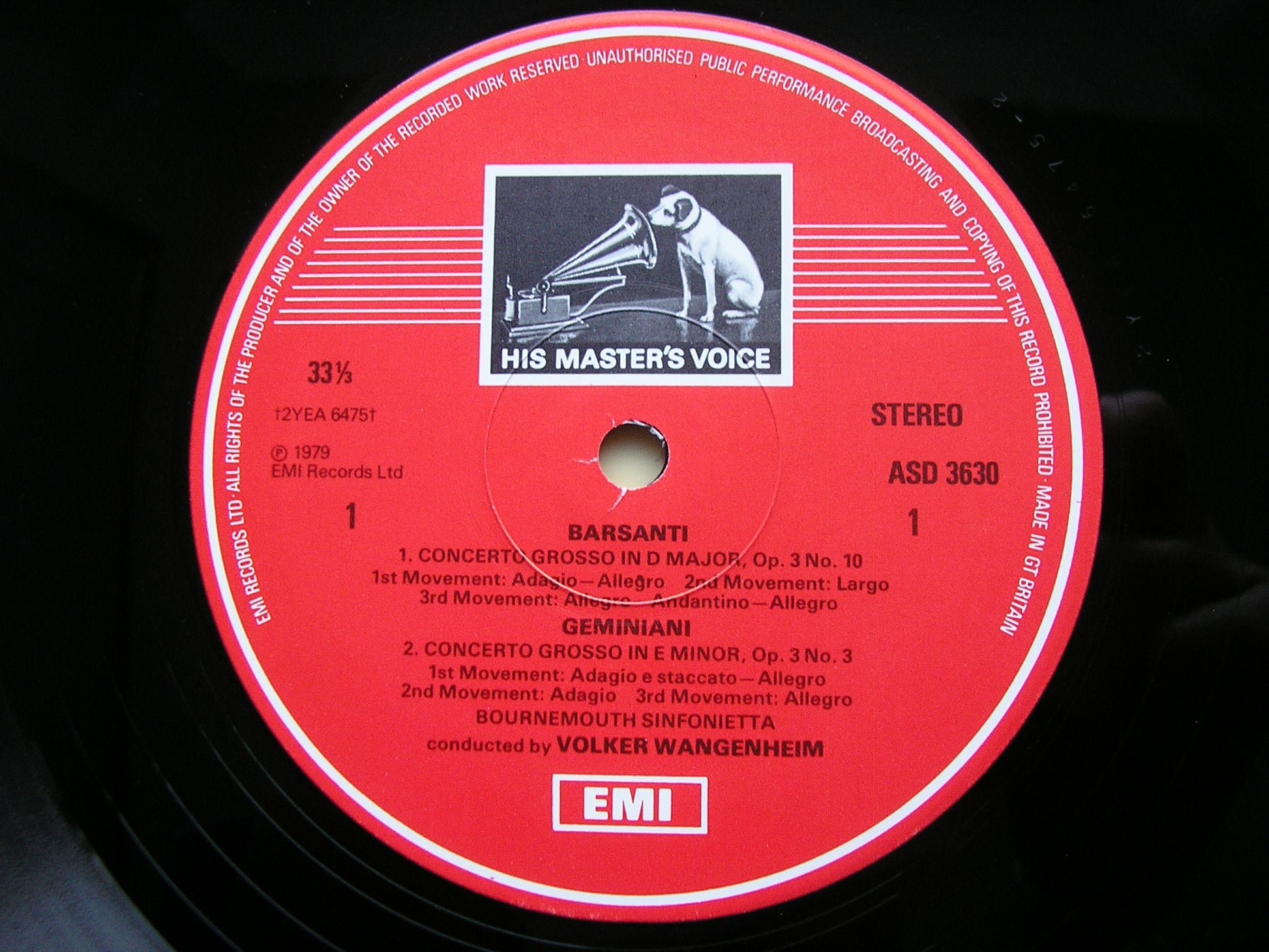 ITALIAN BAROQUE CONCERTOS: BARSANTI / ALBINONI / MANFREDINI / GEMINIANI BOURNEMOUTH SINFONIETTA / WANGENHEIM ASD 3630