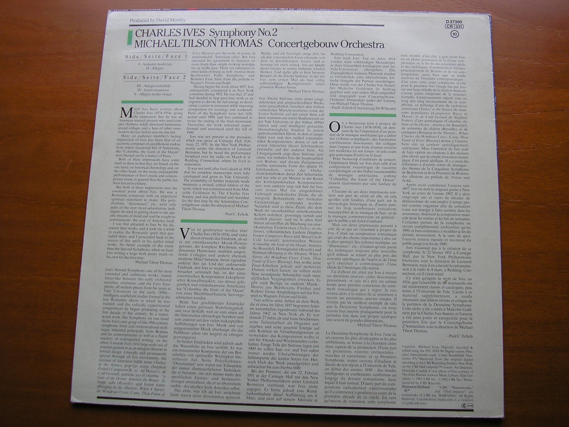 D 37300  IVES: SYMPHOMNY No. 2      MICHAEL TILSON THOMAS / CONCERTGEBOUW ORCHESTRA AMSTERDAM
