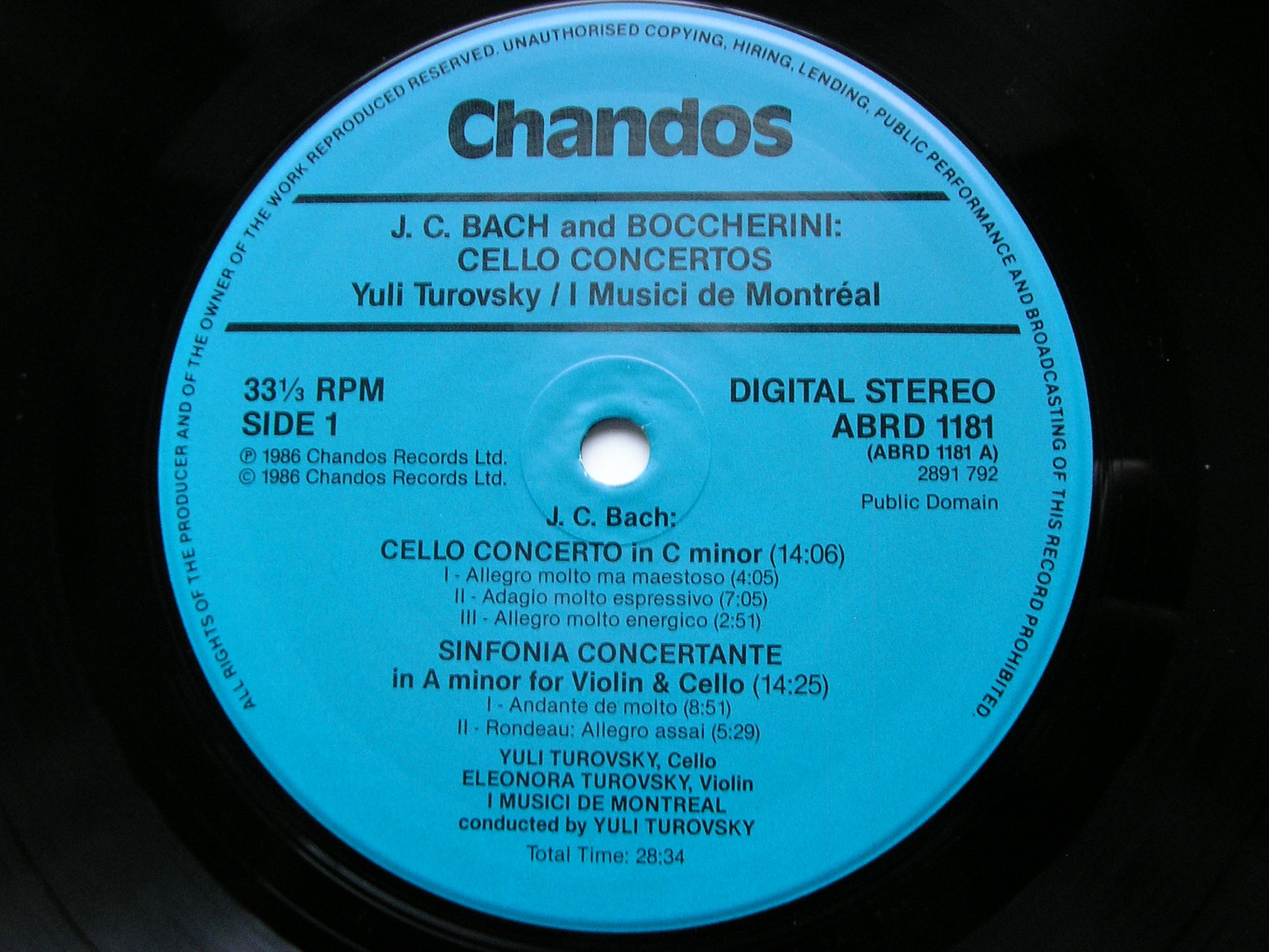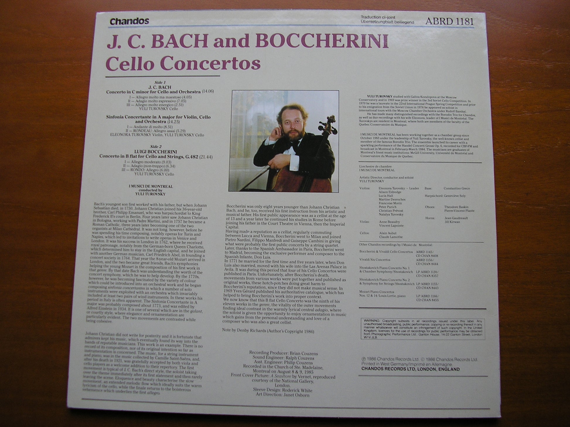 ABRD 1181  BACH: CELLO CONCERTO in C / SINFONIA CONCERTANTE in A for violin & cello / BOCCHERINI: CELLO CONCERTO in B      YULI & ELEONORA TUROVSKY / I MUSICI DE MONTREAL