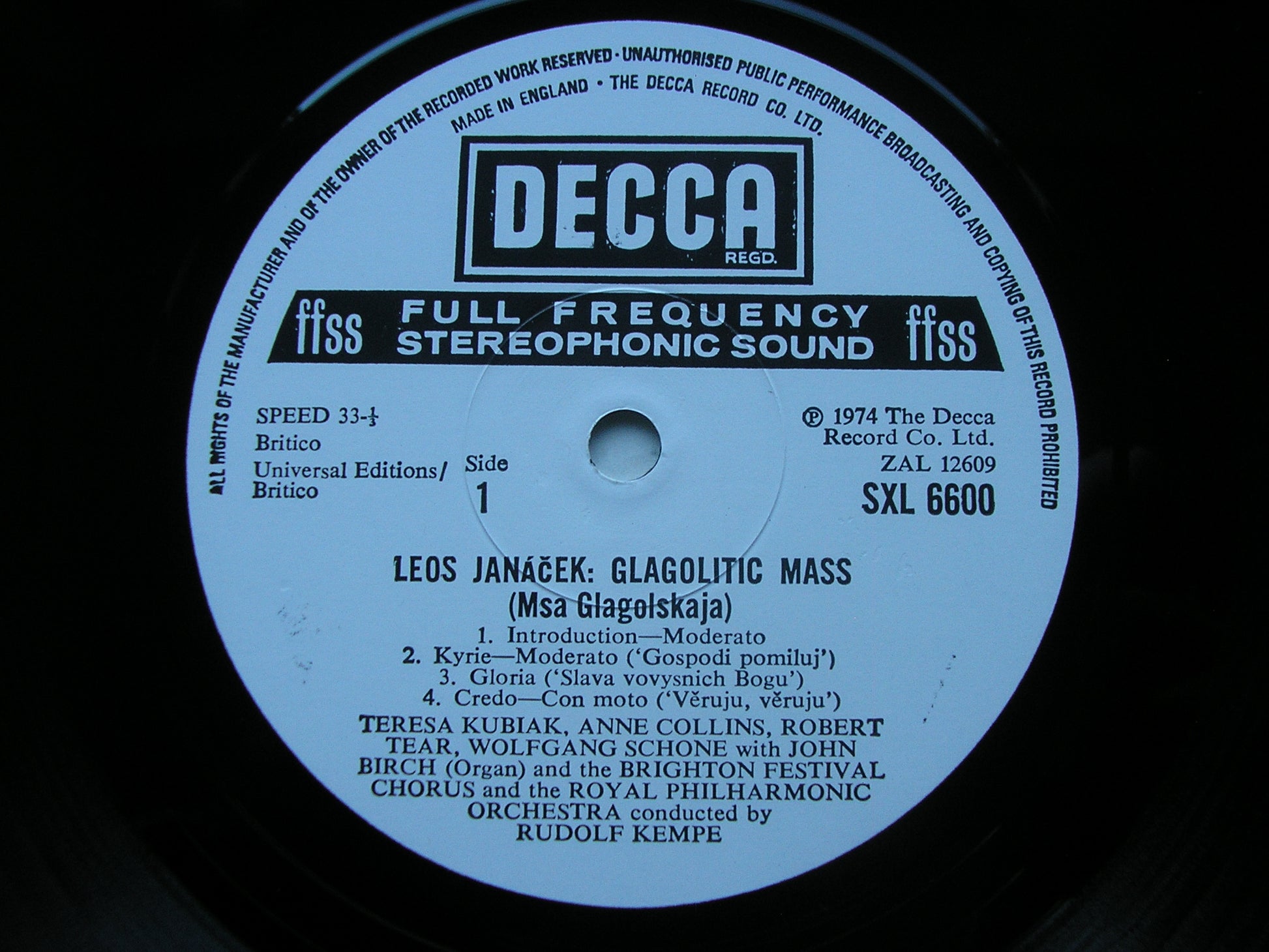 SXL 6600  JANACEK: GLAGOLITIC MASS     SOLOISTS / ROYAL PHILHARMONIC ORCHESTRA / RUDOLF KEMPE