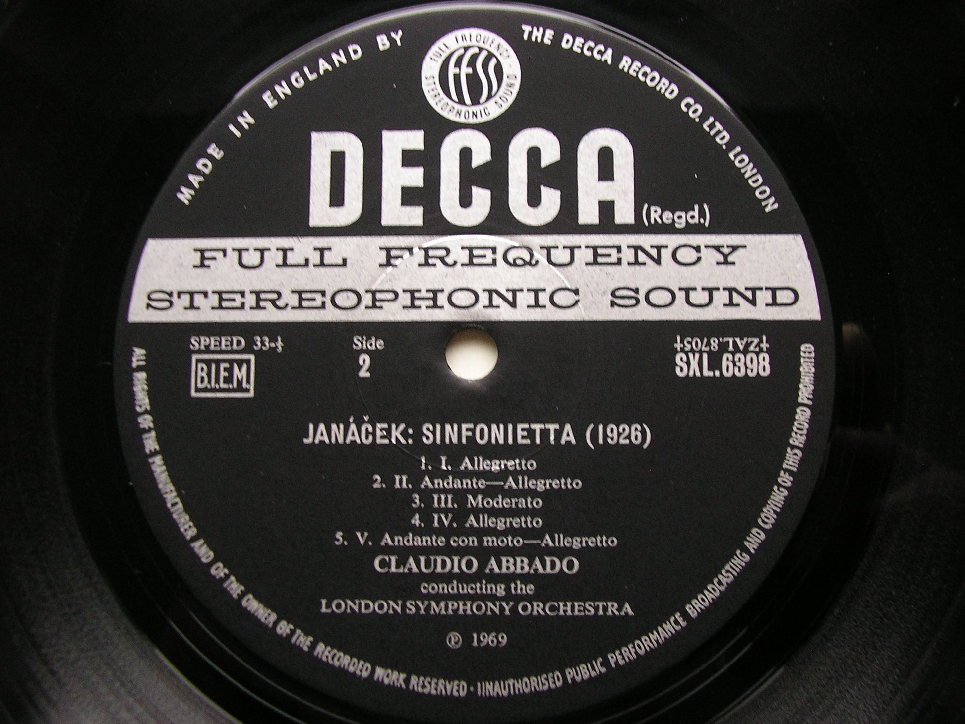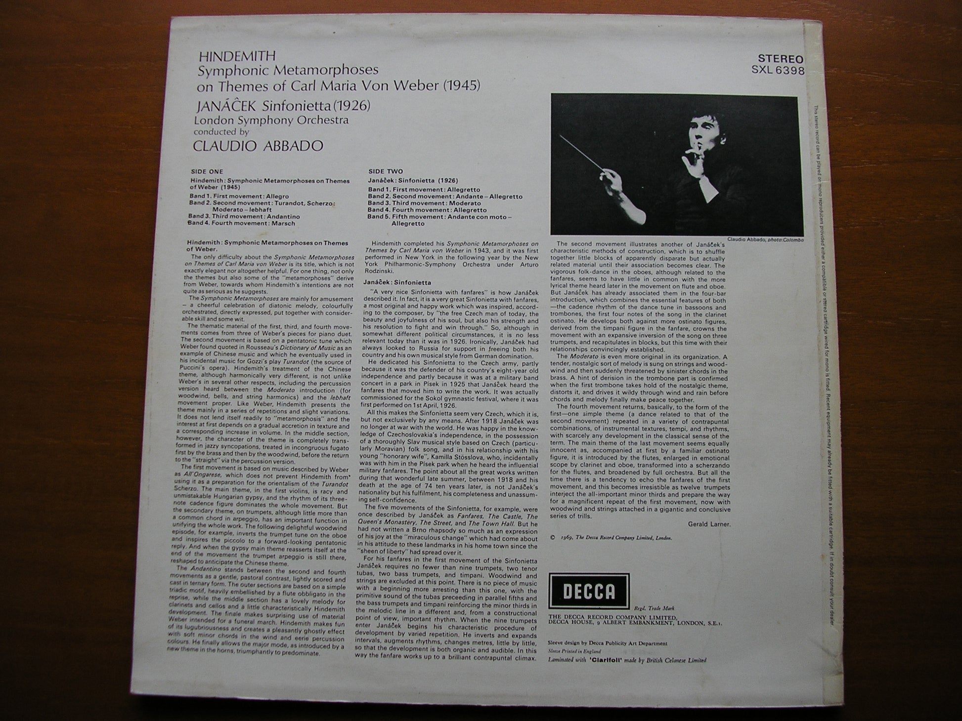 SXL 6398  JANACEK: SINFONIETTA / HINDEMITH: SYMPHONIC METAMORPHOSES ON THEMES OF WEBER     CLAUDIO ABBADO / LONDON SYMPHONY ORCHESTRA