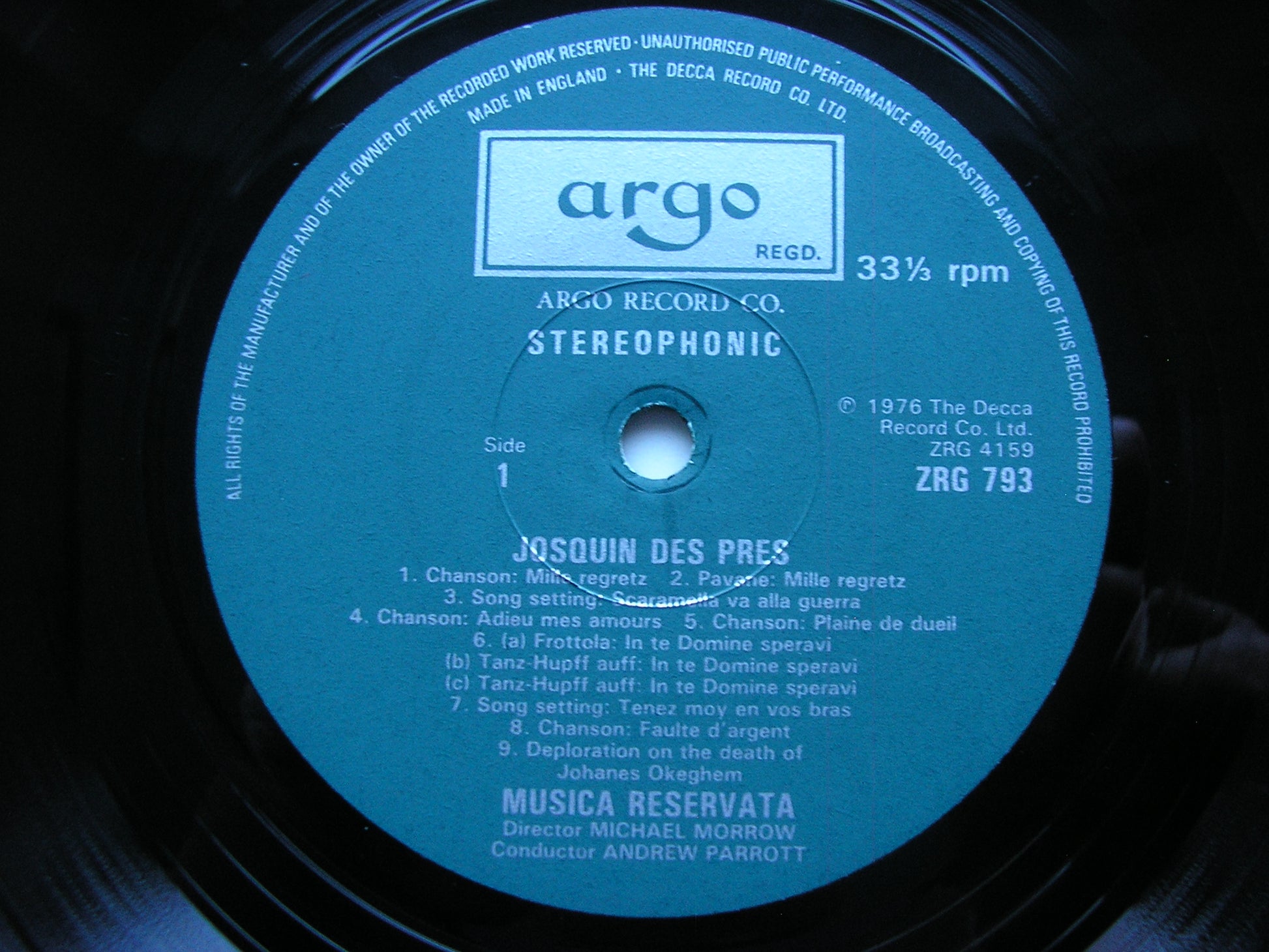 ZRG 793  JOSQUIN: SONGS/ CHANSONS / FROTTOLE     MUSICA RESERVATA / MICHAEL MORROW / ANDREW PARROTT