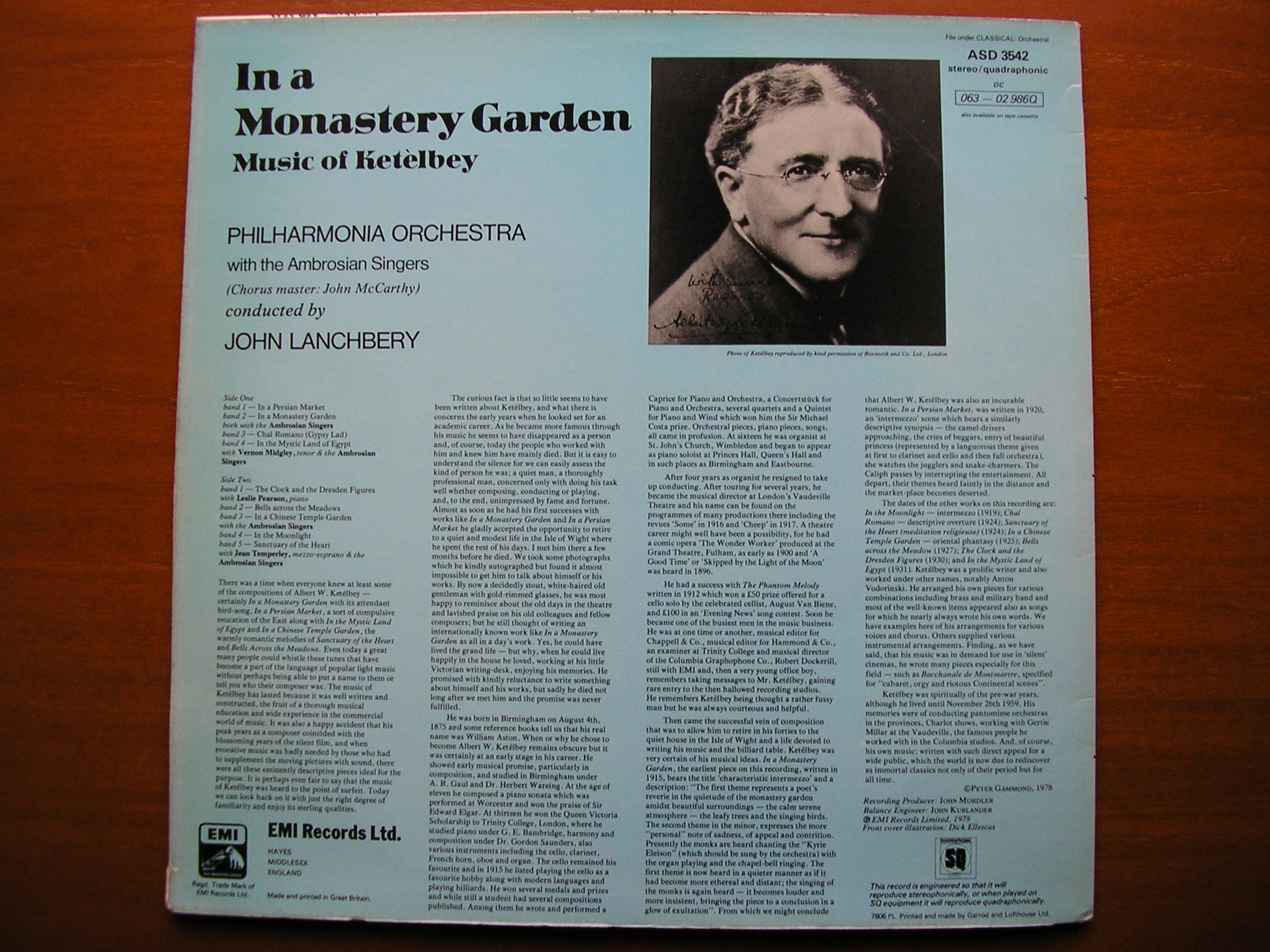 ASD 3542  KETELBEY: ORCHESTRAL MUSIC   JOHN LANCHBERY / PHILHARMONIA ORCHESTRA