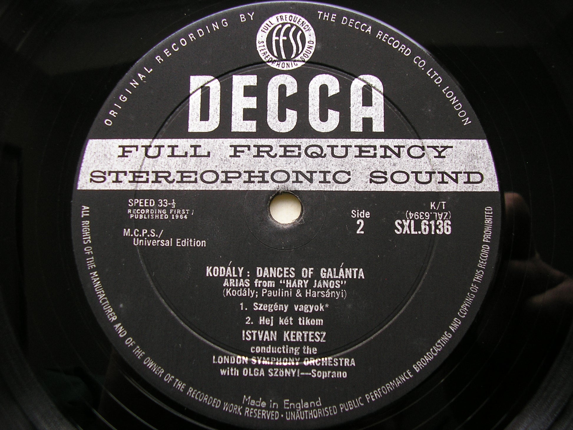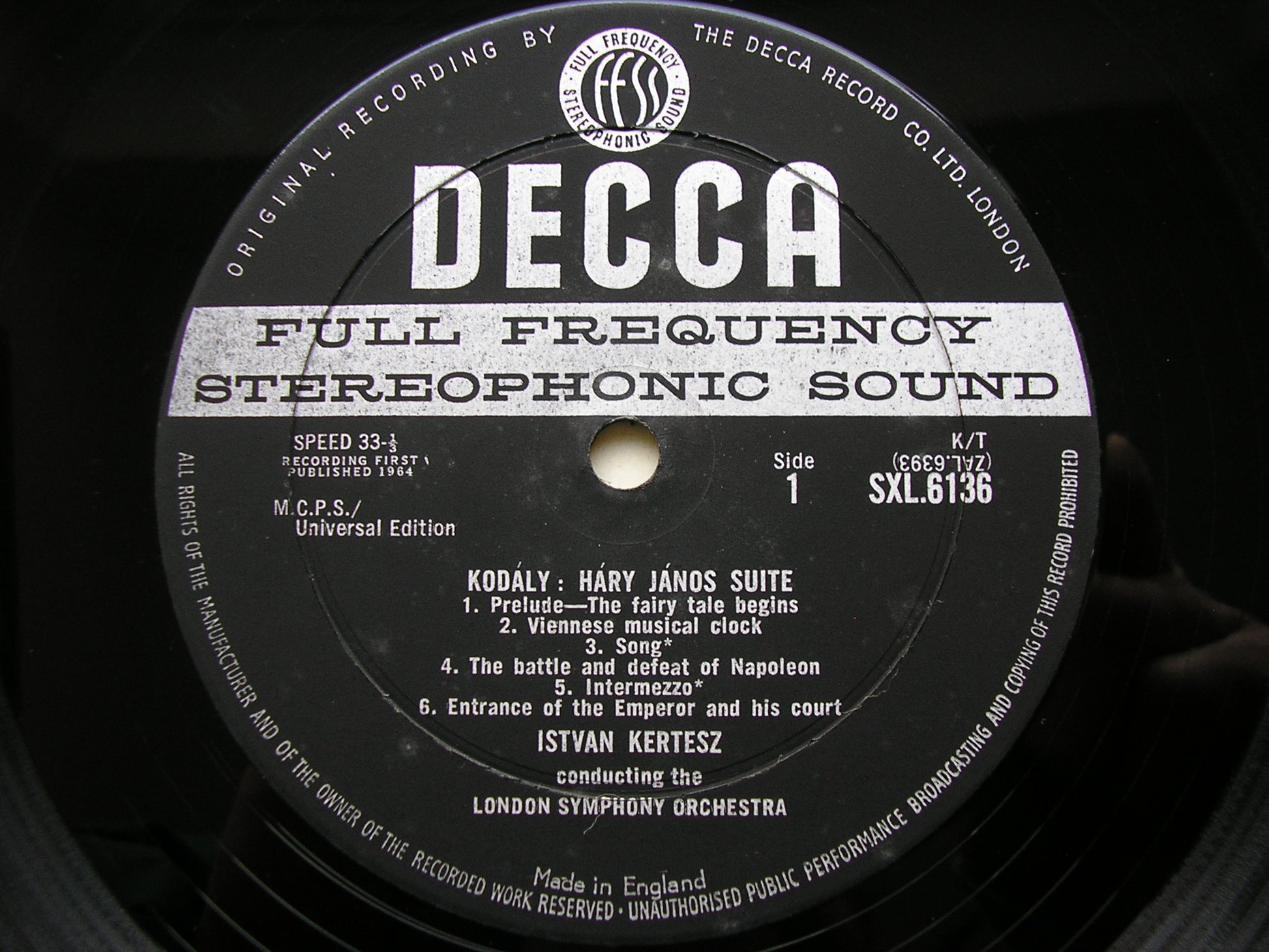 SXL 6136  KODALY: HARY JANOS Suite / DANCES OF GALANTA   ISTVAN KERTESZ / LONDON SYMPHONY ORCHESTRA