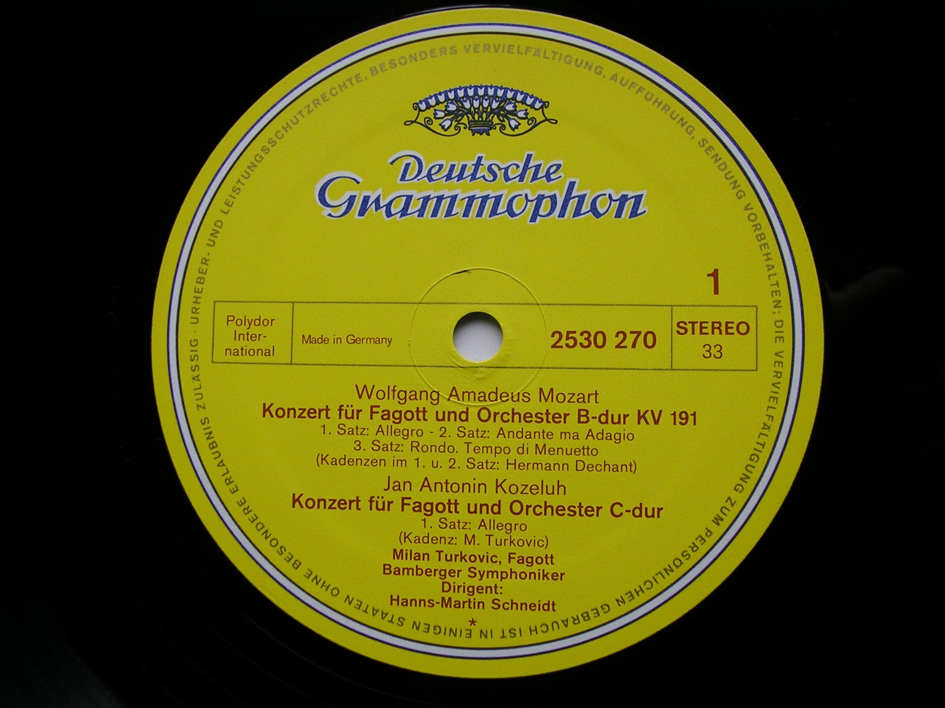 2530 270  KOZELUH / MOZART / WEBER: BASSOON CONCERTOS     MILAN TURKOVIC / BAMBERG SYMPHONY ORCHESTRA / HANNS - MARTIN SCHNEIDT
