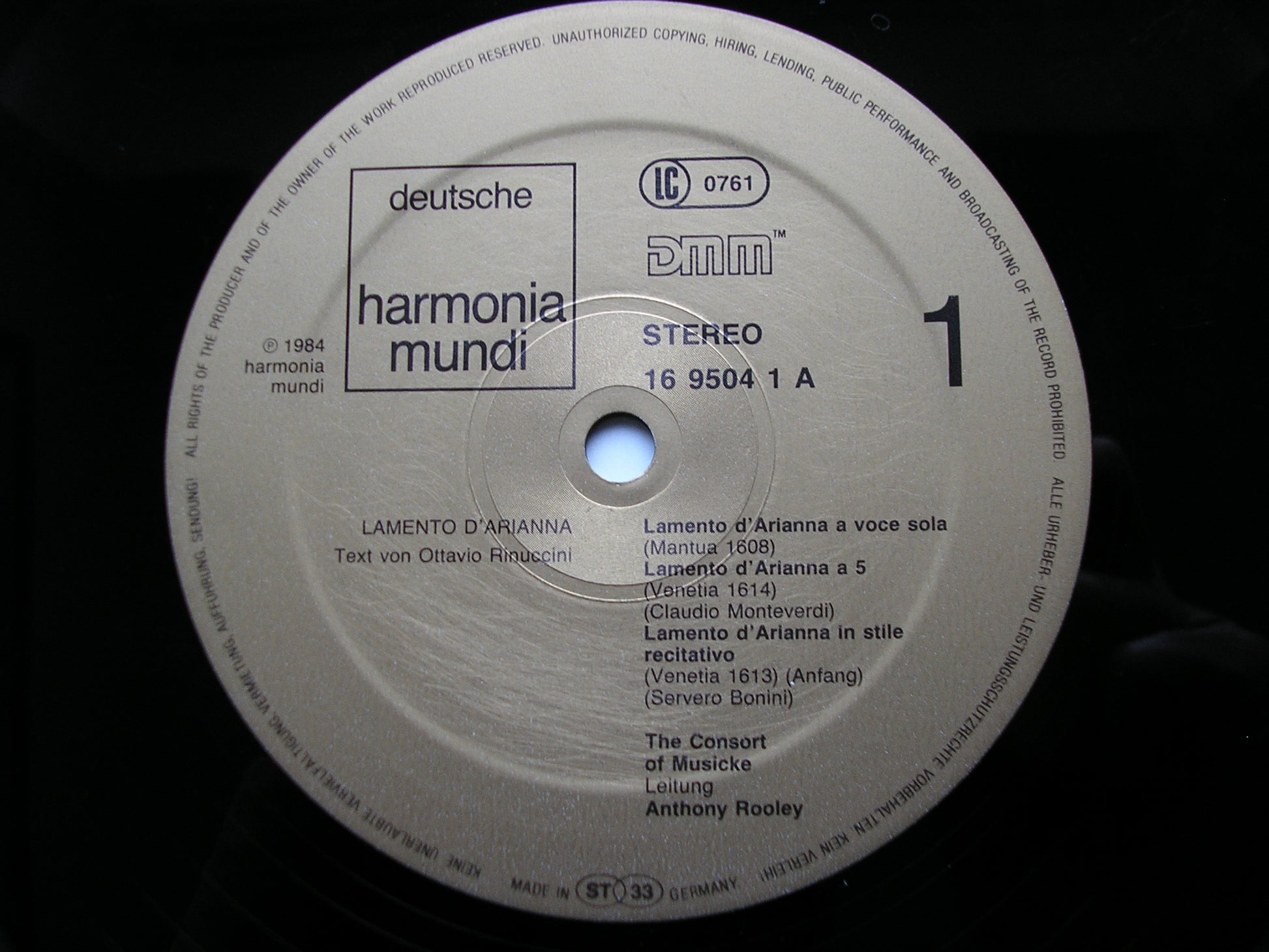19 9504  LAMENTO D'ARIANNA: SIX COMPOSERS' RESPONSE TO THE RINUCCINI TEXT, OR MONTEVERDI'S TREATMENT OF IT, ACROSS A SPAN OF 90 YEARS.       THE CONSORT OF MUSICKE / ANTHONY ROOLEY