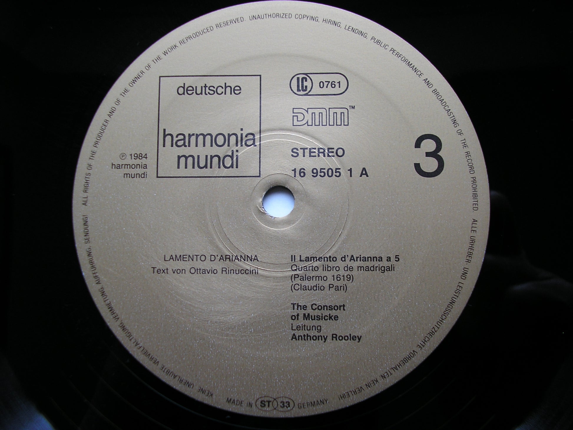 LAMENTO D'ARIANNA: MONTEVERDI / BONINI / PARI / COSTA / VERSO / RASCARINI THE CONSORT OF MUSICKE / ROOLEY 2LP 16 9504