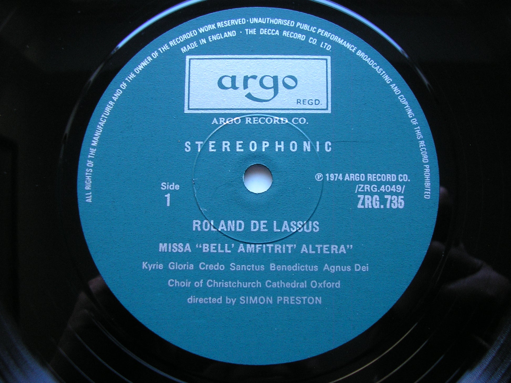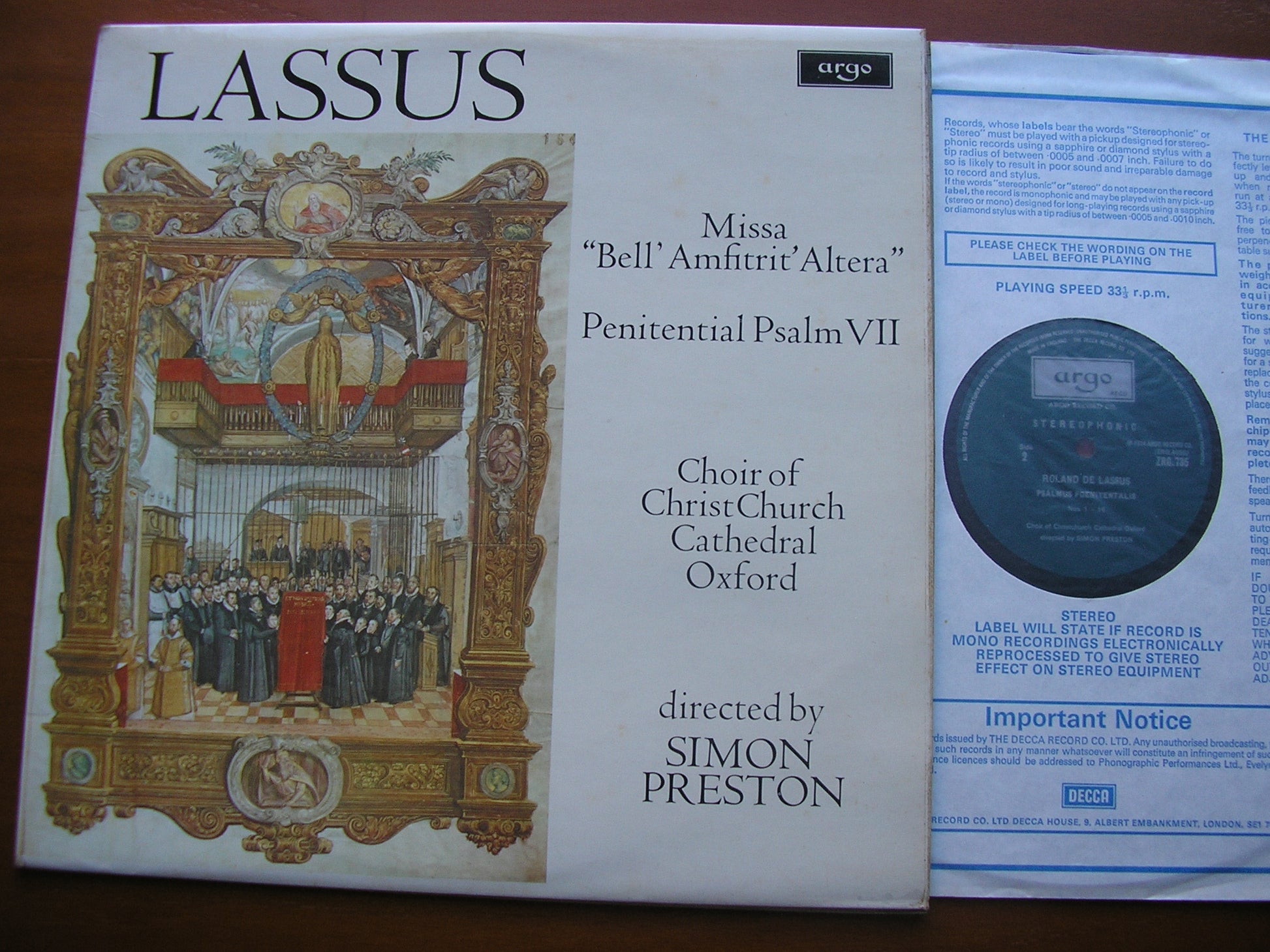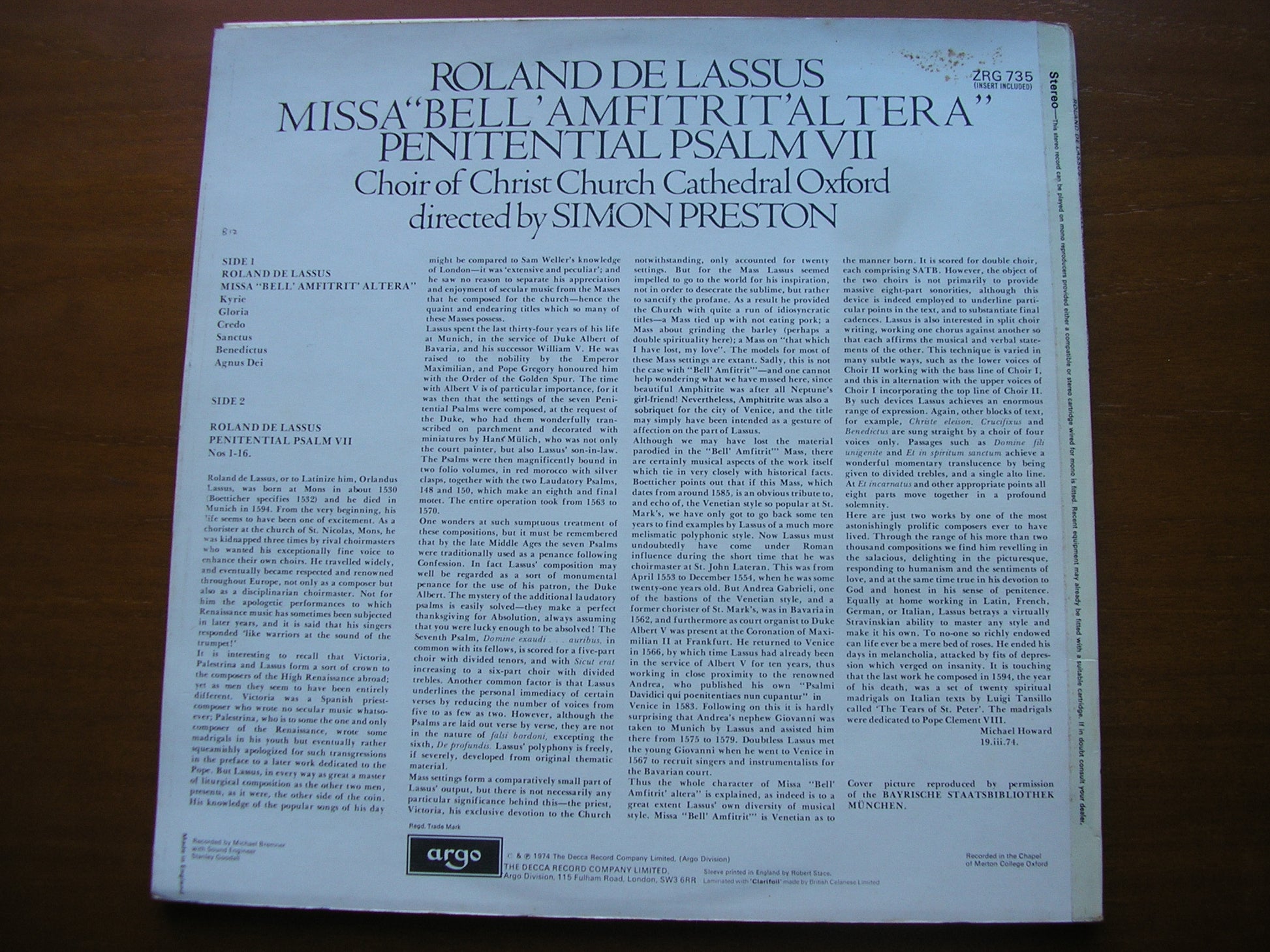 LASSUS: MISSA Bell' Amfitrit' Altera / PENITENTIAL PSALM No. 7 CHOIR OF CHRIST CHURCH CATHEDRAL, OXFORD / PRESTON ZRG 735