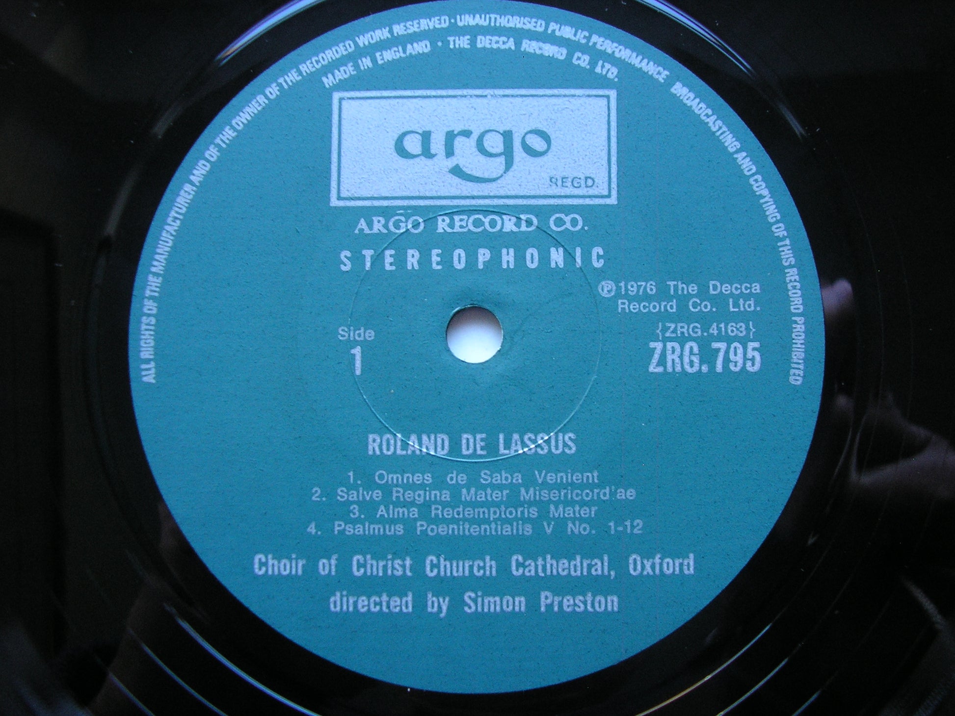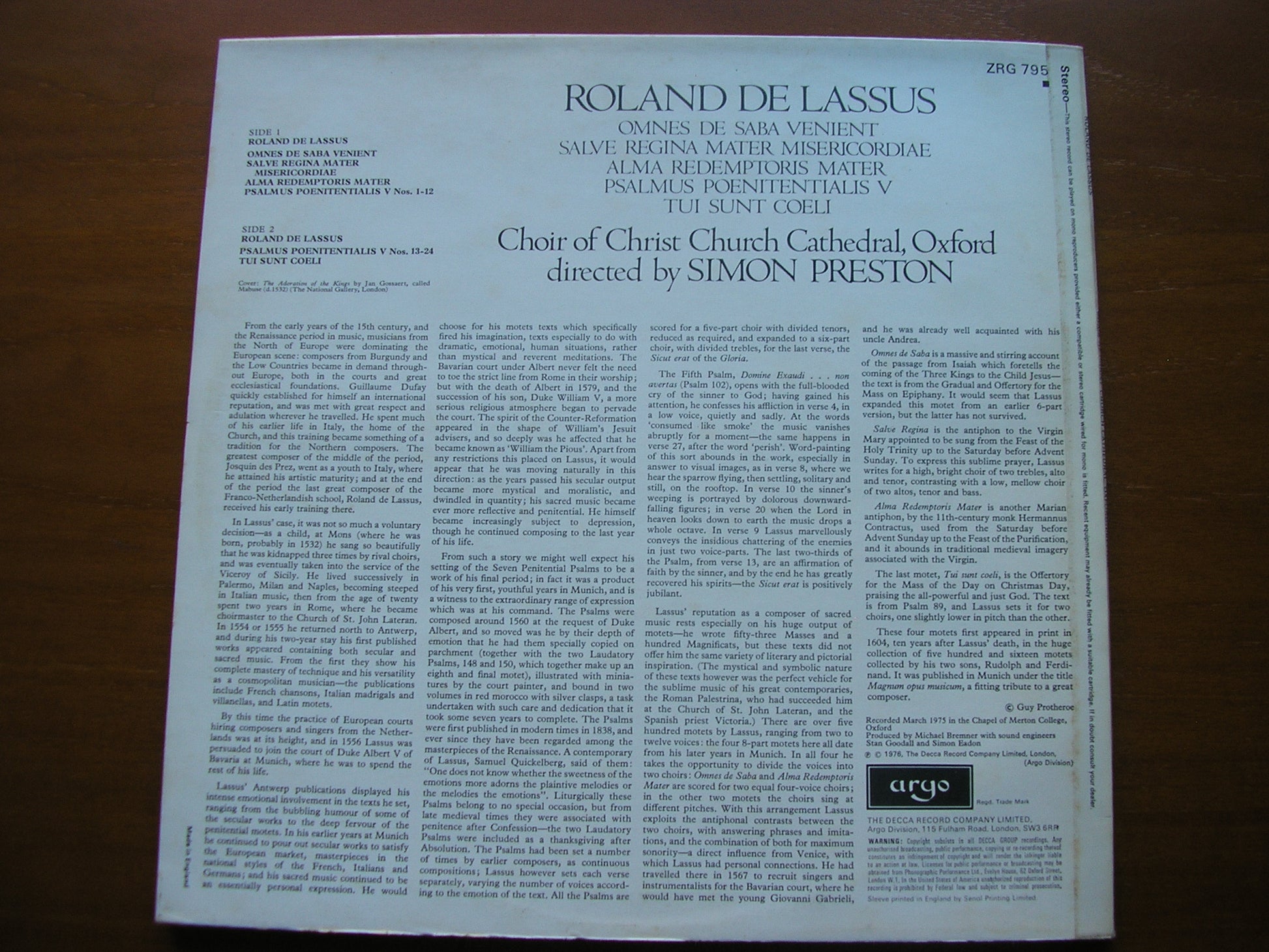 ZRG 795  LASSUS: PSALMS & MOTETS     CHOIR OF CHRIST CHURCH CATHEDRAL, OXFORD / SIMON PRESTON