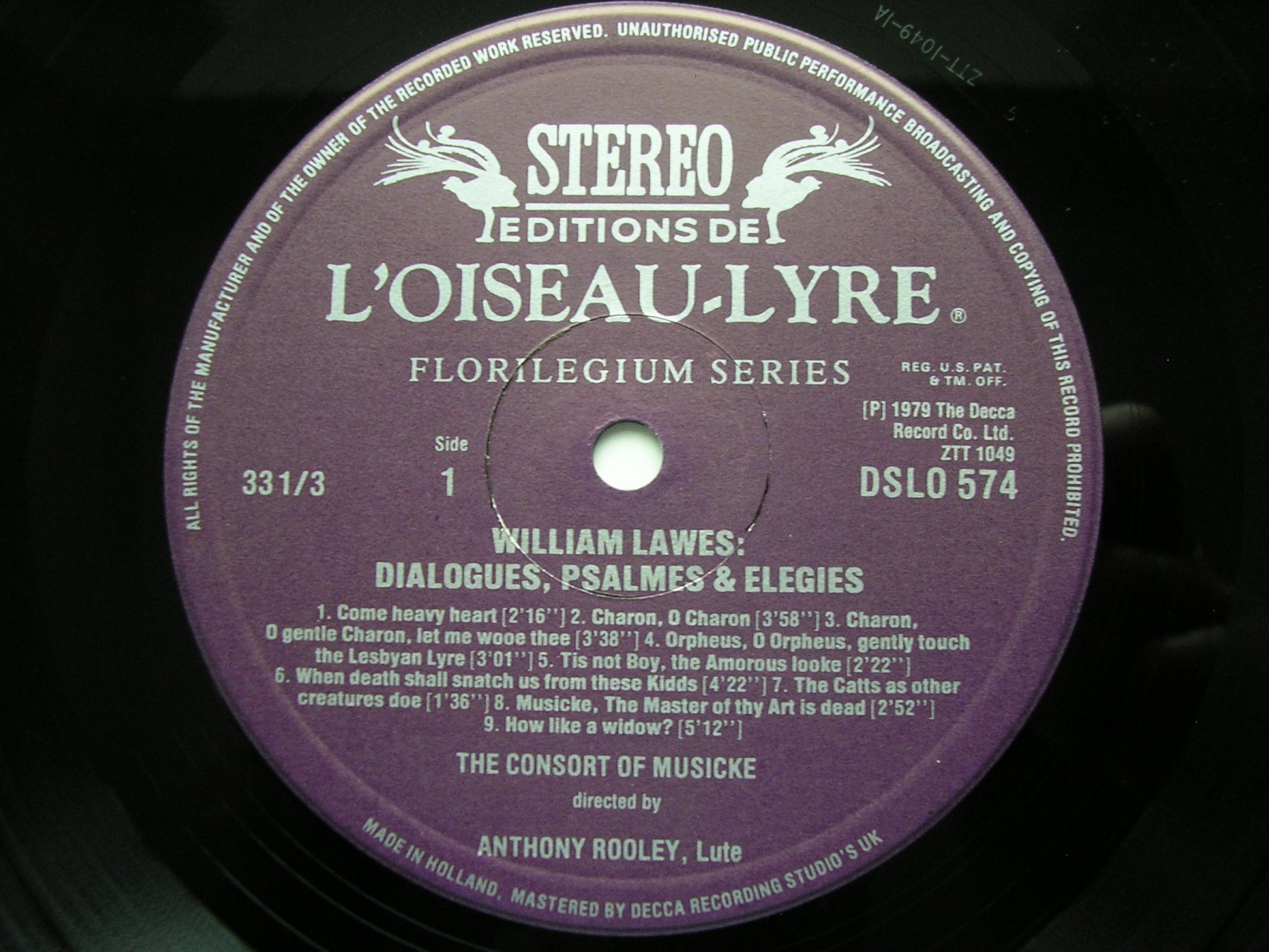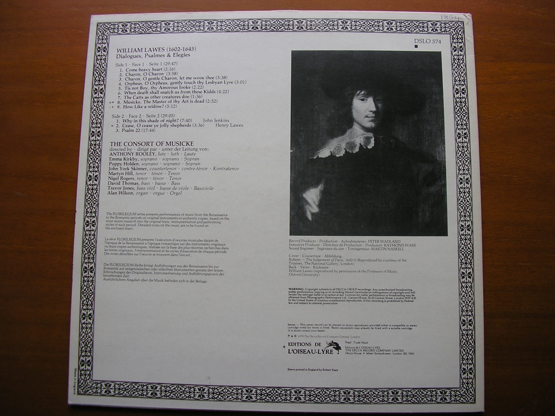 DSLO 574  LAWES: DIALOGUES / PSALMES / ELEGIES     THE CONSORT OF MUSICKE
