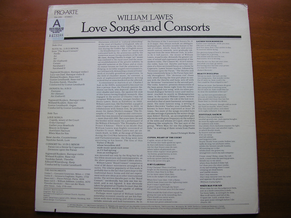 PAL 1061 LAWES: LOVE SONGS & CONSORTS SOLOISTS / GUSTAV LEONHARDT