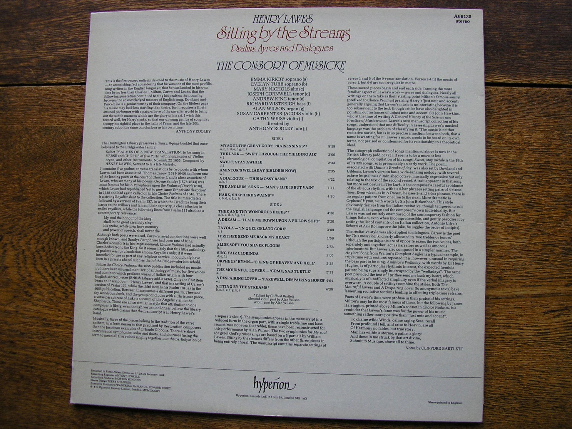 LAWES: SITTING BY THE STREAMS KIRKBY / CONSORT OF MUSICKE / ROOLEY A66135
