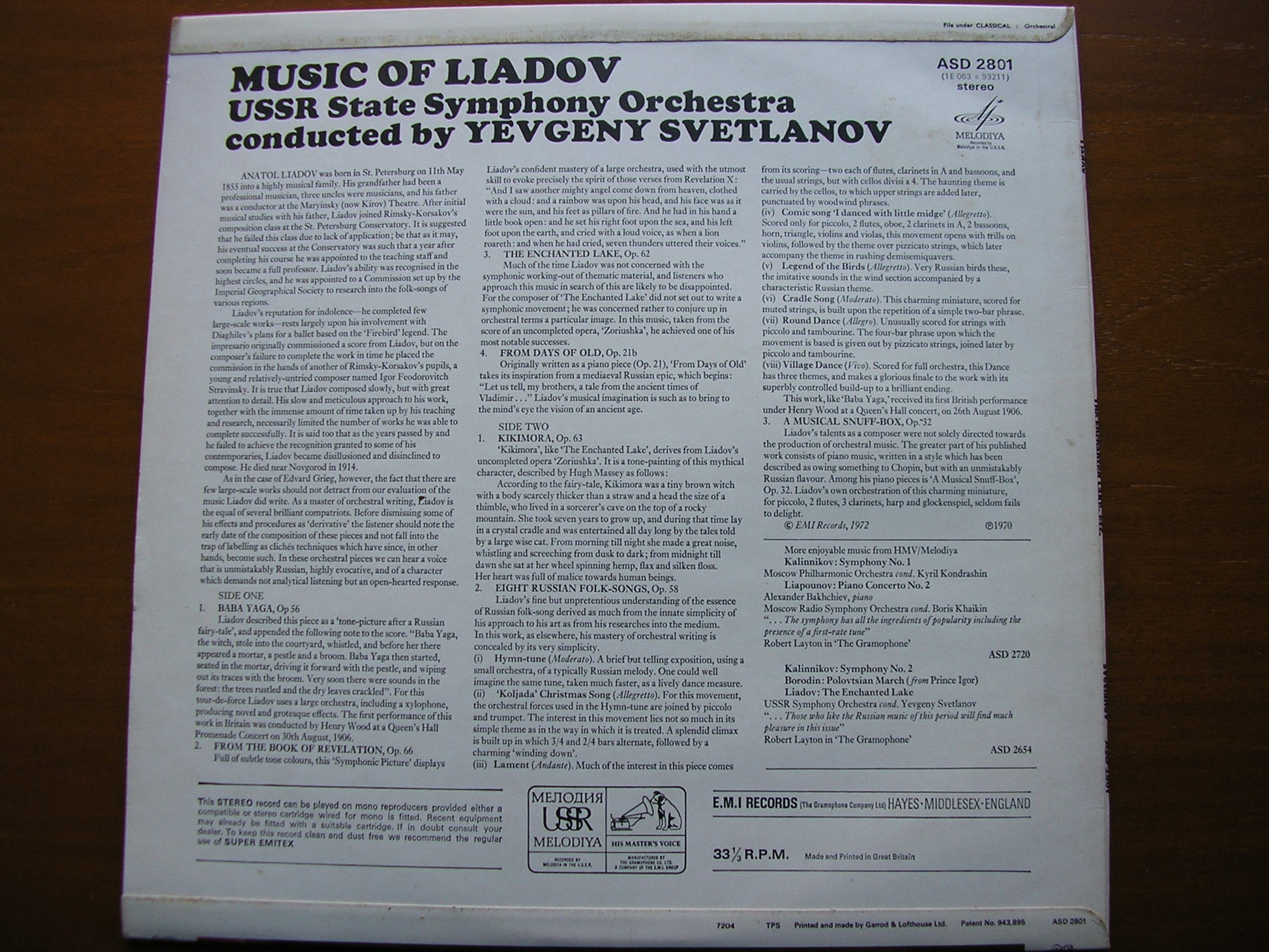 ASD 2801 LIADOV: A MUSICAL SNUFF BOX / KIKIMORA / THE ENCHANTED LAKE YEVGENY SVETLANOV / USSRSO