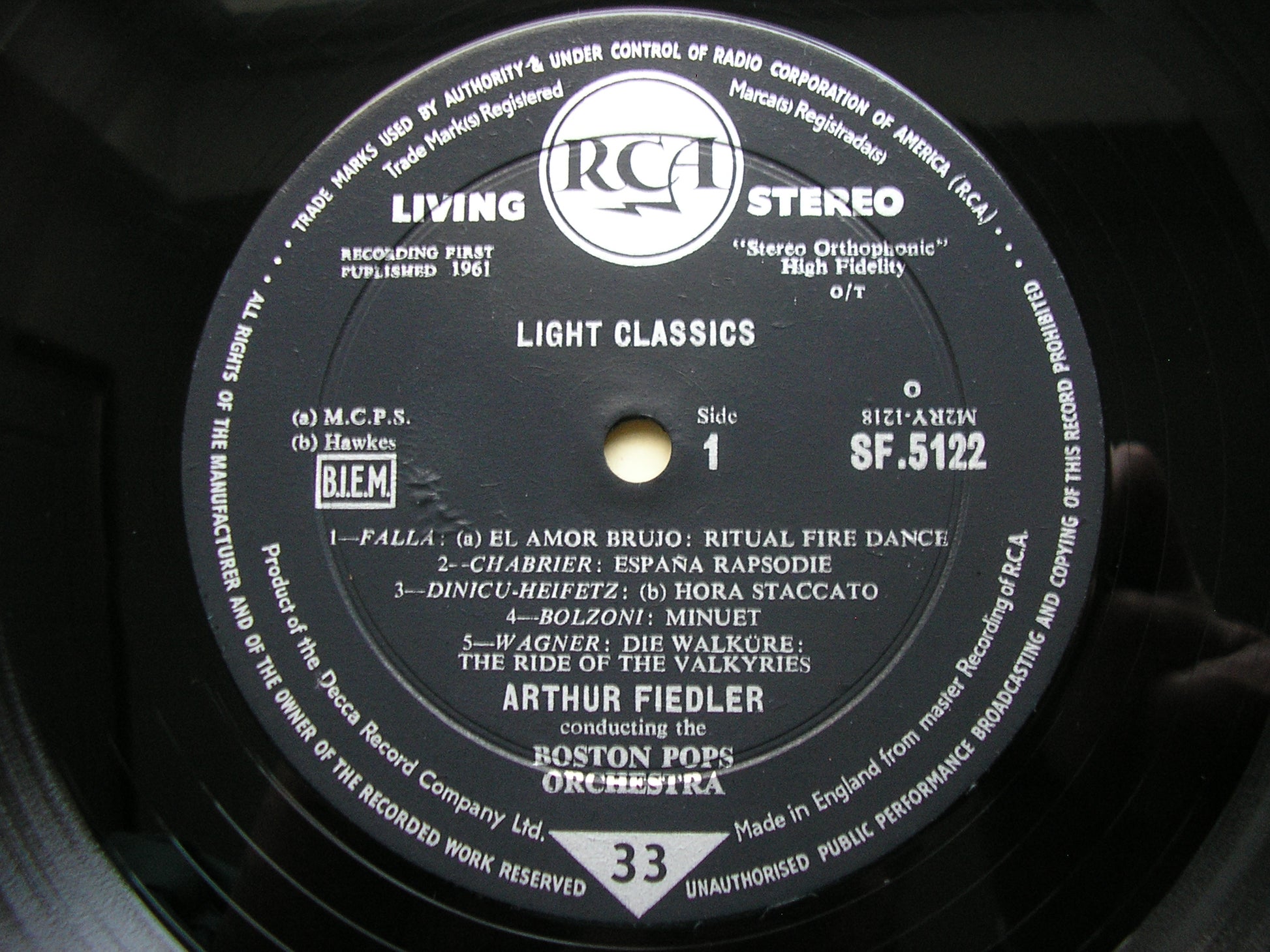 SF 5122  ORCHESTRAL WORKS: CHABRIER / FALLA / WAGNER / KETELBEY / NICOLAI / RIMSKY - KORSAKOV / MENDELSSOHN     ARTHUR FIEDLER / BOSTON POPS ORCHESTRA