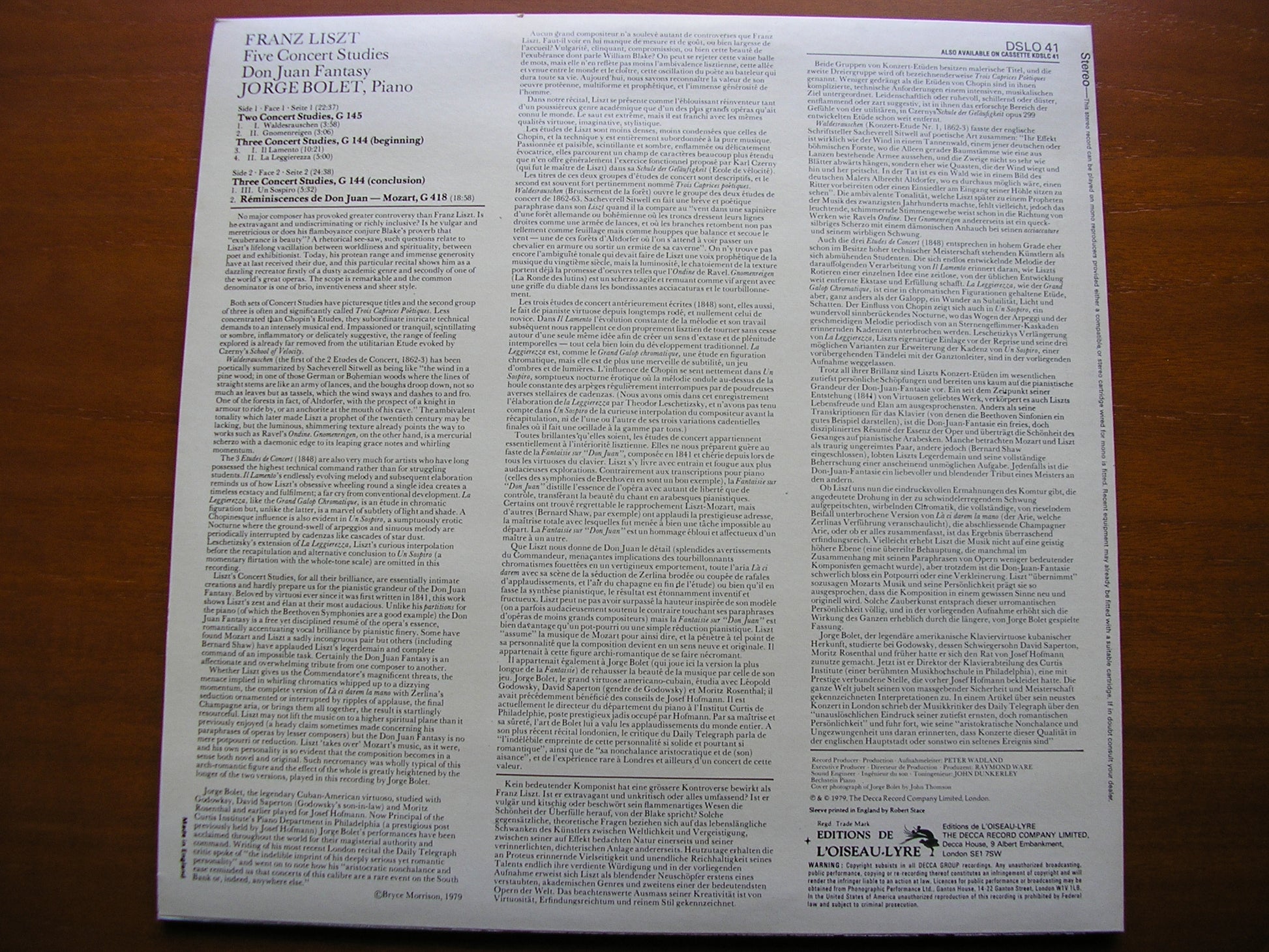 DSLO 41  LISZT: CONCERT STUDIES G145 & 144 / REMINISCENCES DE DON JUAN G418 JORGE BOLET