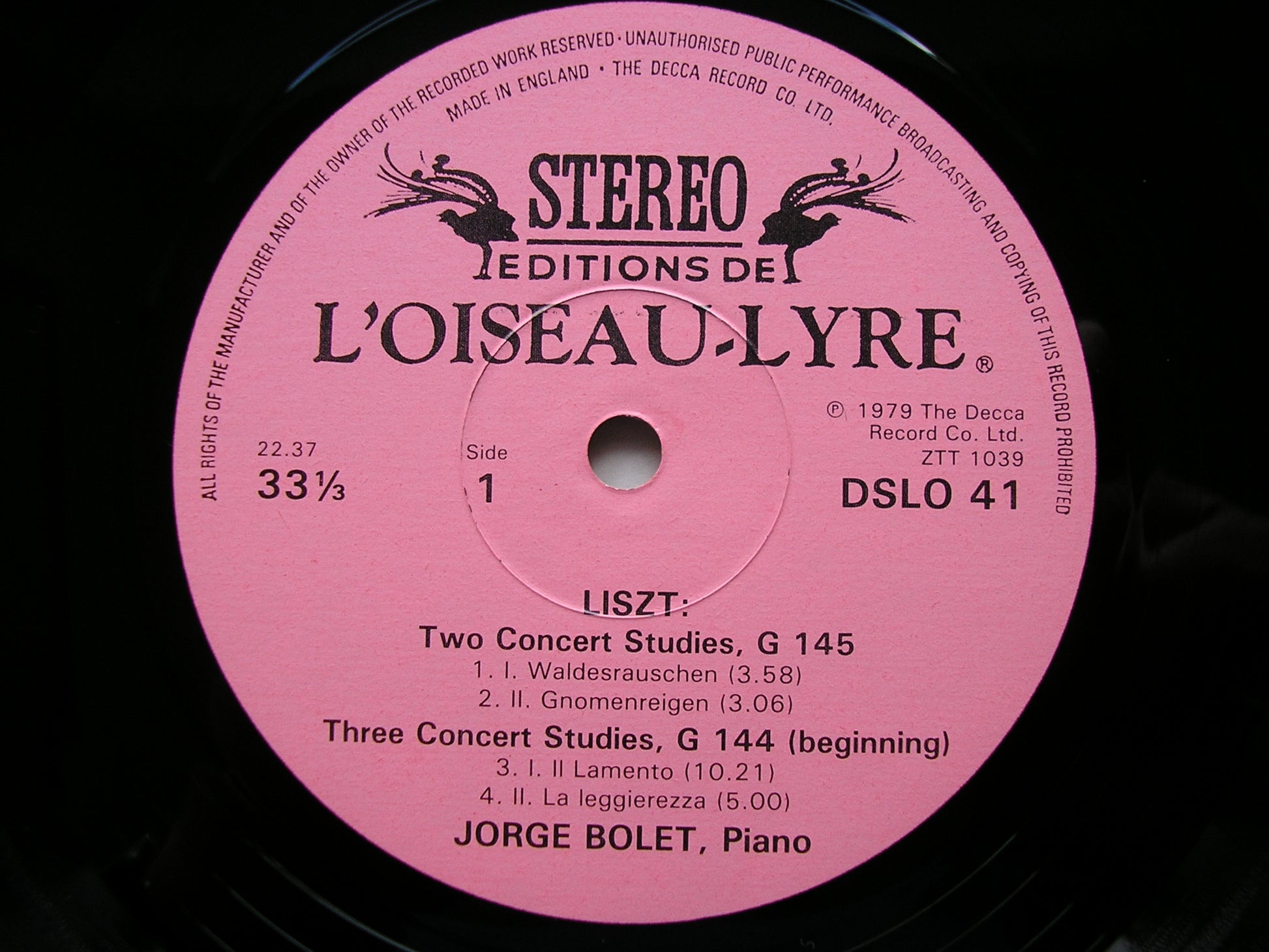 LISZT: CONCERT STUDIES G145 & G144 / REMINISCENCES DE DON JUAN G418 JORGE BOLET DSLO 41