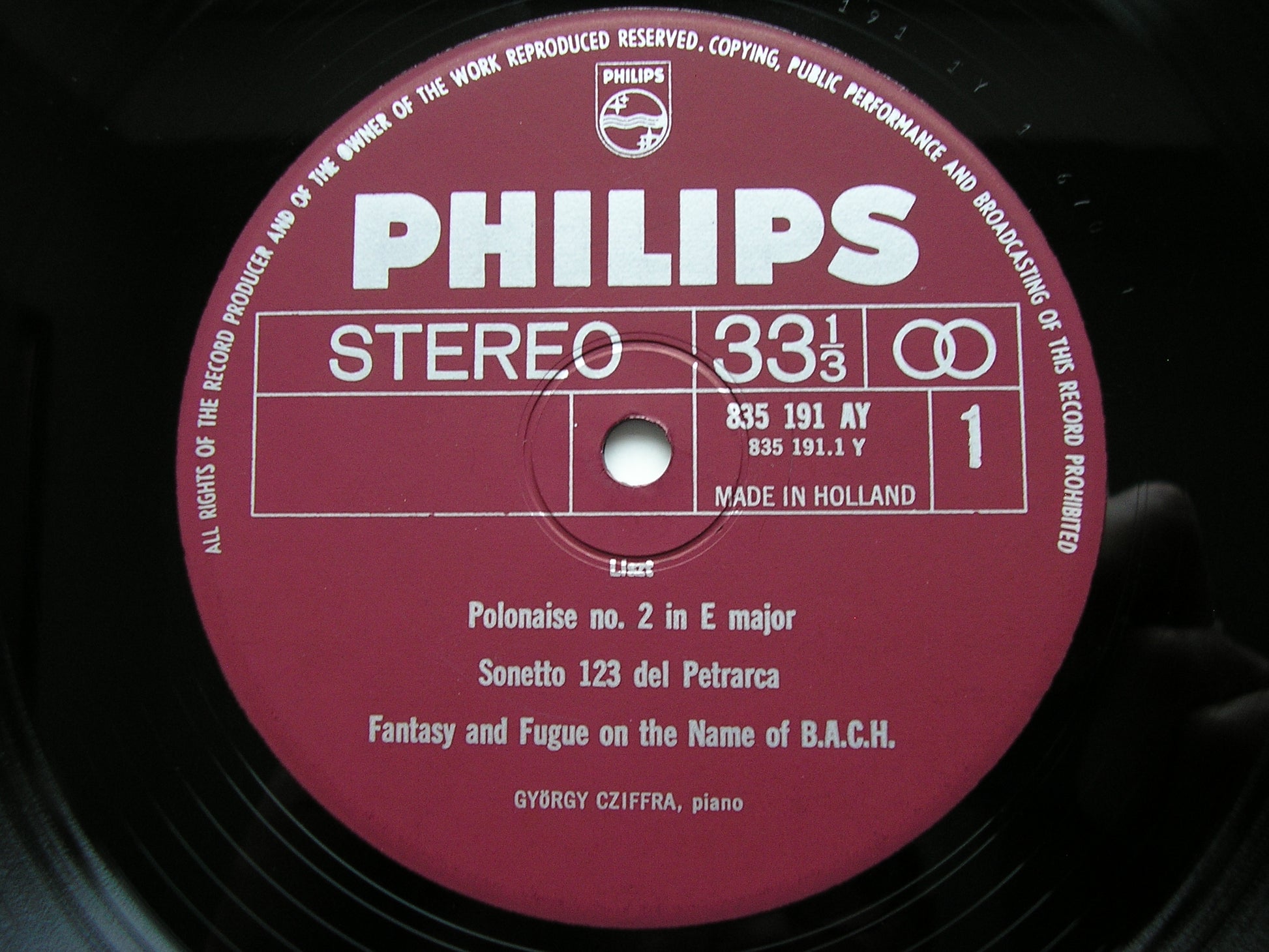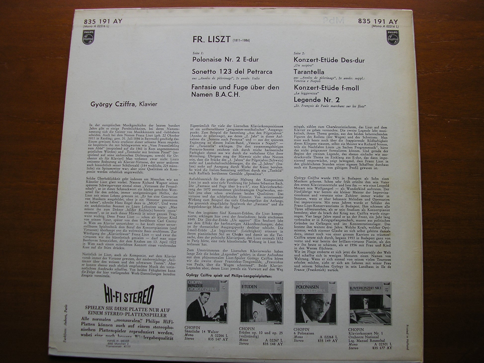 835 191 AY  LISZT: POLONAISE no. 2 / PETRARCH SONNET 123 / TWO CONCERT ETUDES / LEGENDE No. 2 / TARANTELLA / FANTASIE & FUGUE   GYORGY CZIFFRA