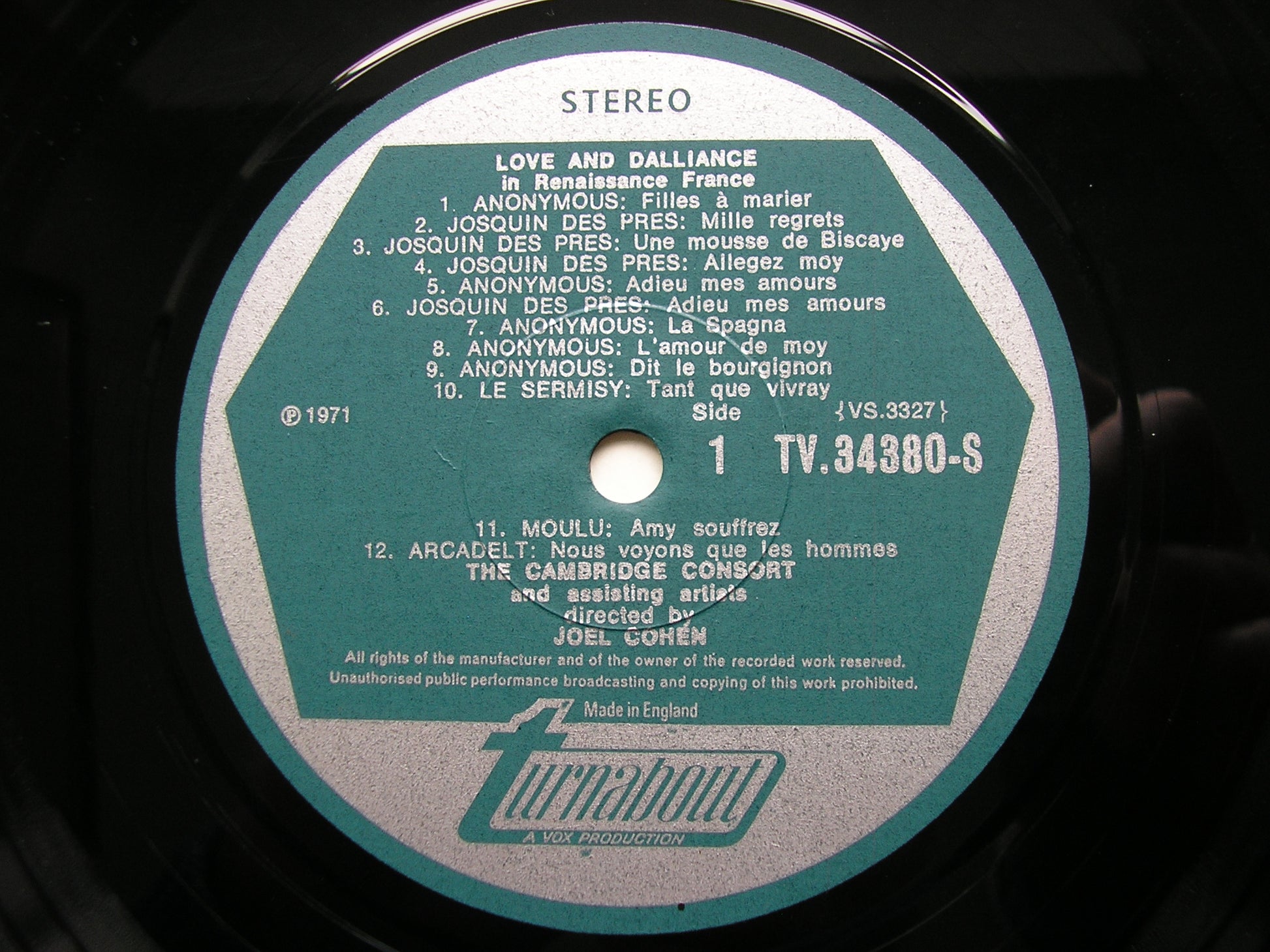 LOVE & DALLIANCE IN RENAISSANCE FRANCE JOEL COHEN / THE CAMBRIDGE CONSORT TV 34380S