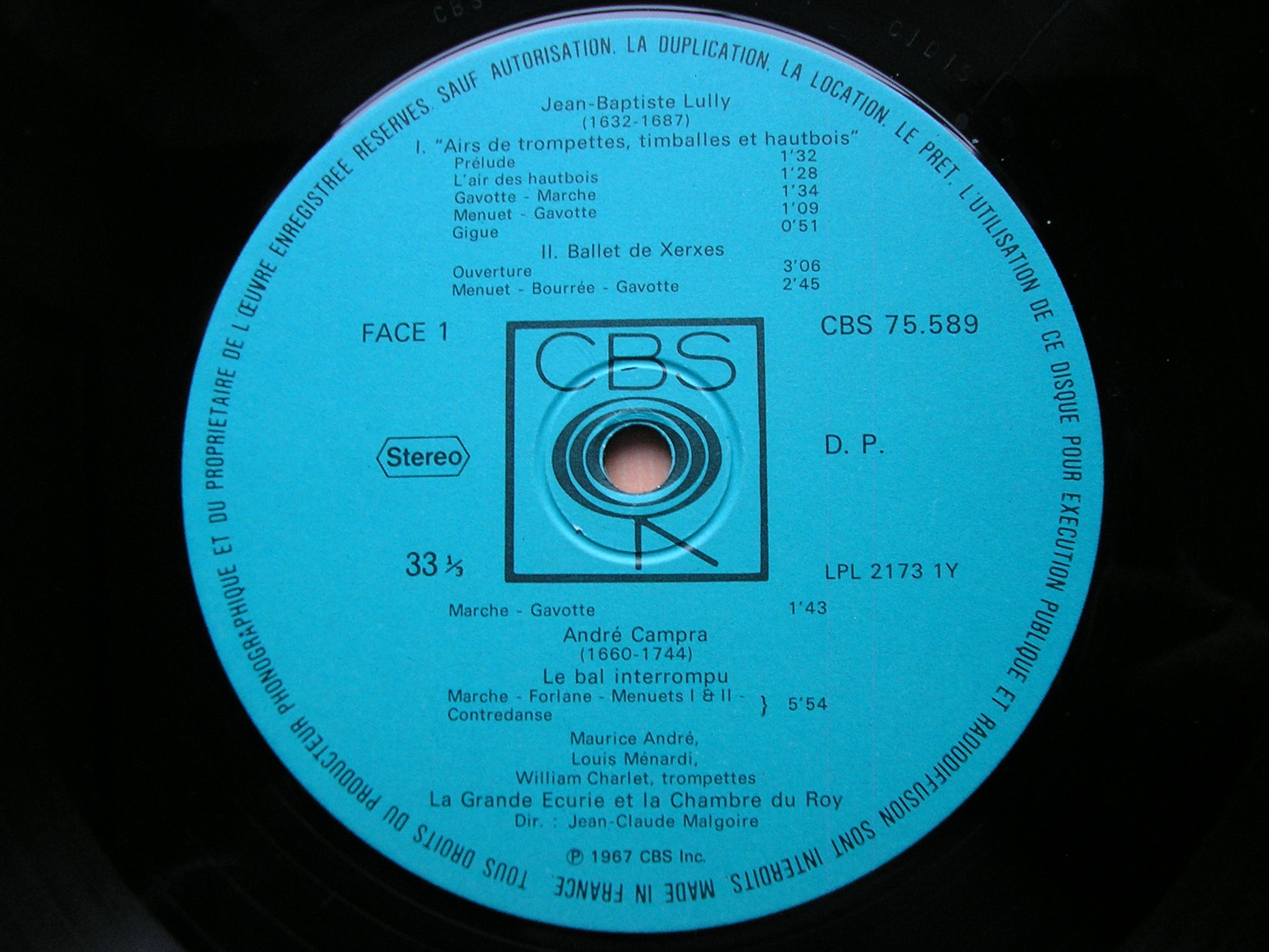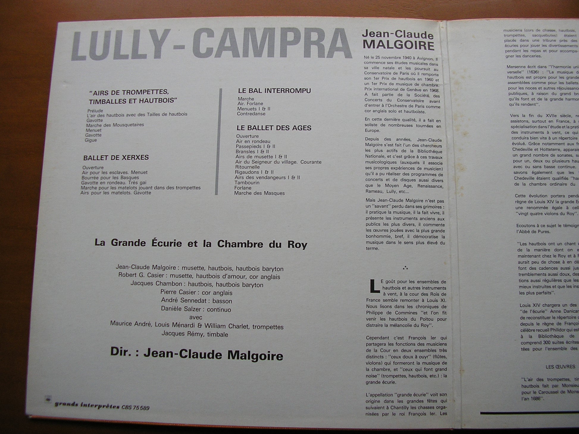 LULLY: MUSIC FOR TRUMPETS, DRUMS & OBOES / XERXES ballet music / CAMPRA: Ballet Music MALGOIRE / LA GRANDE ECURIE ET LA CHAMBRE DU ROI 75589