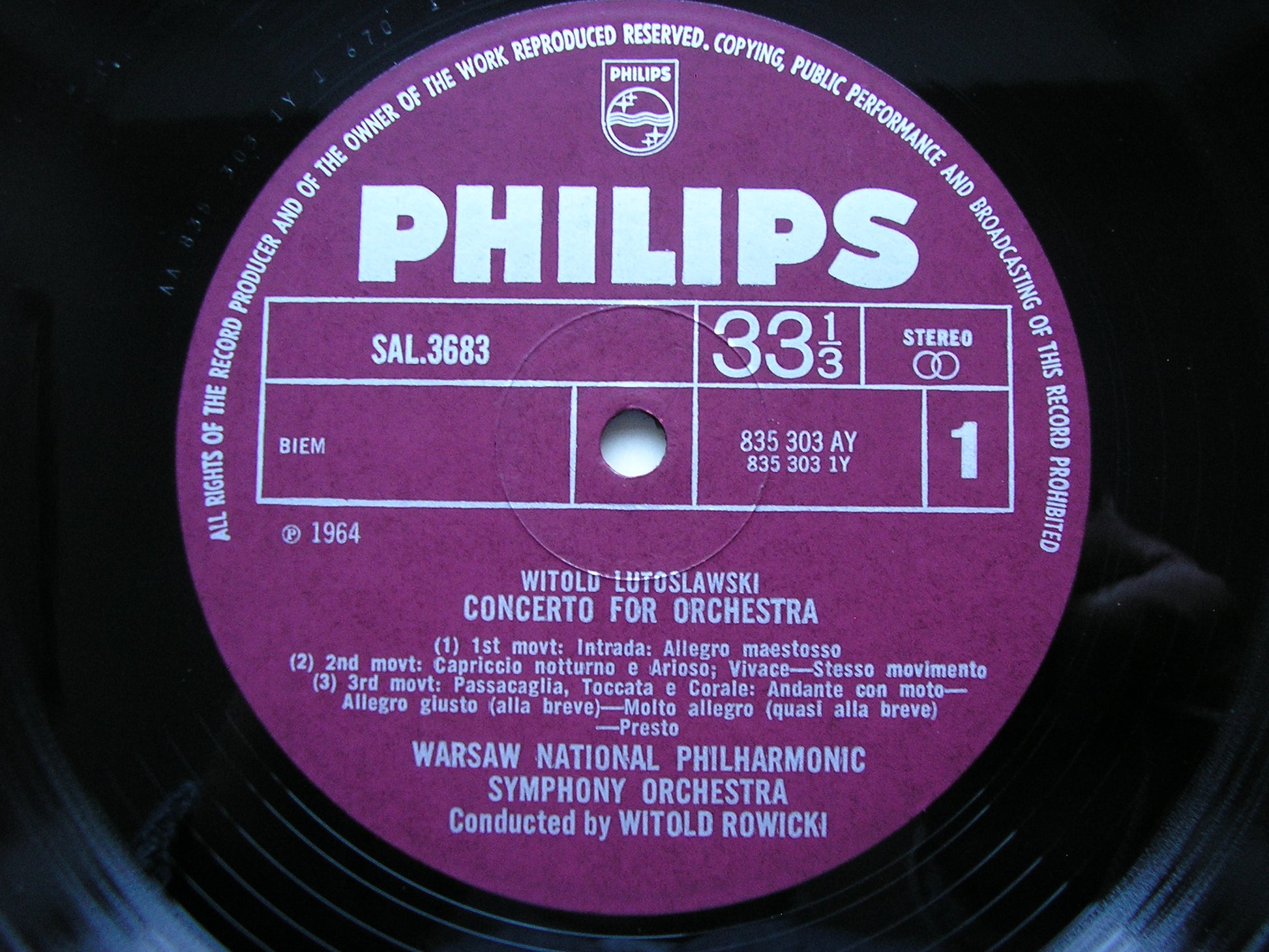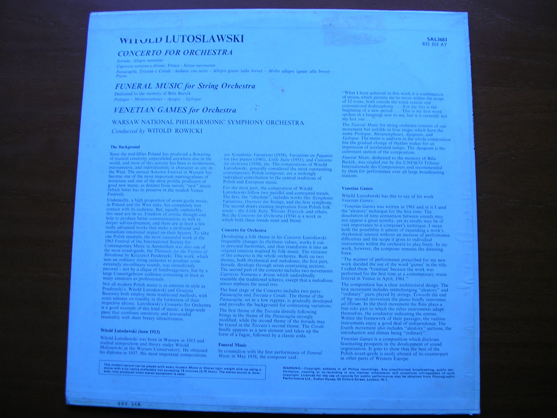 SAL 3683  LUTOSLAWSKI: CONCERTO FOR ORCHESTRA / FUNERAL MUSIC / VENETIAN GAMES     WITOLD ROWICKI / WARSAW SYMPHONY ORCHESTRA