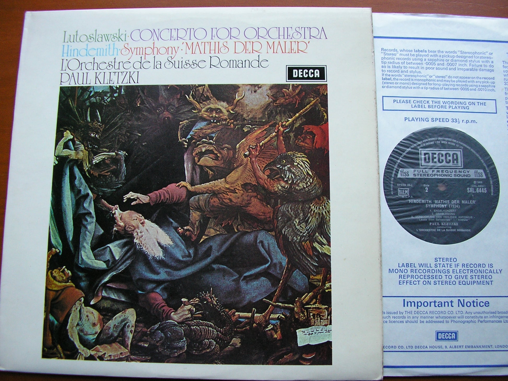SXL 6445  LUTOSLAWSKI: CONCERTO FOR ORCHESTRA / HINDEMITH: MATHIS DER MALER   PAUL KLETZKI / SUISSE ROMANDE ORCHESTRA