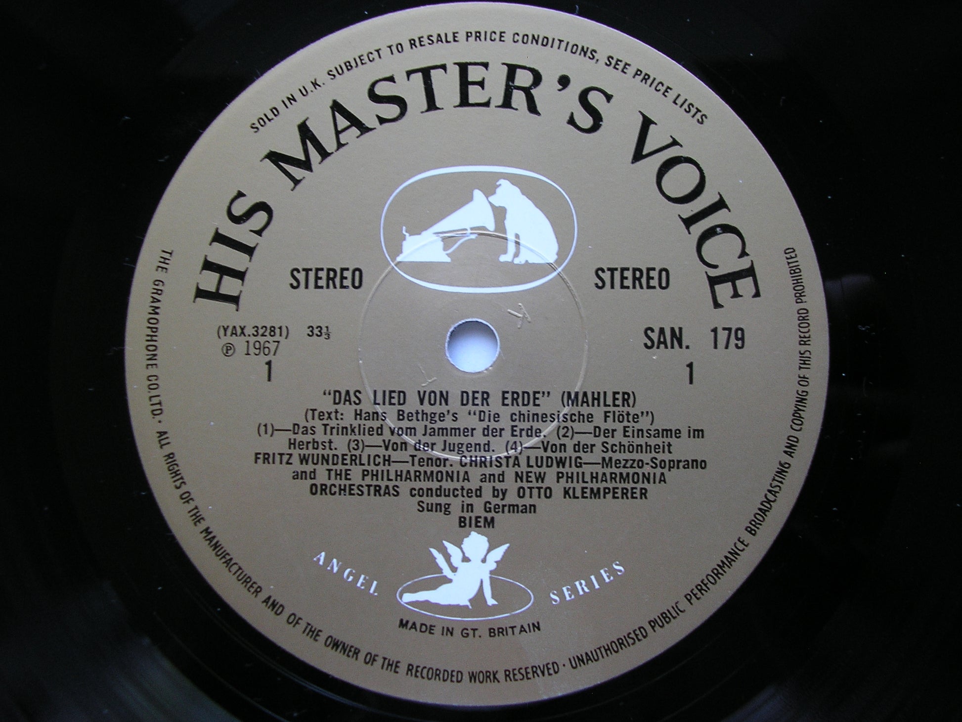 MAHLER: DAS LIED VON DER ERDE LUDWIG / WUNDERLICH / NEW PHILHARMONIA / KLEMPERER SAN 179