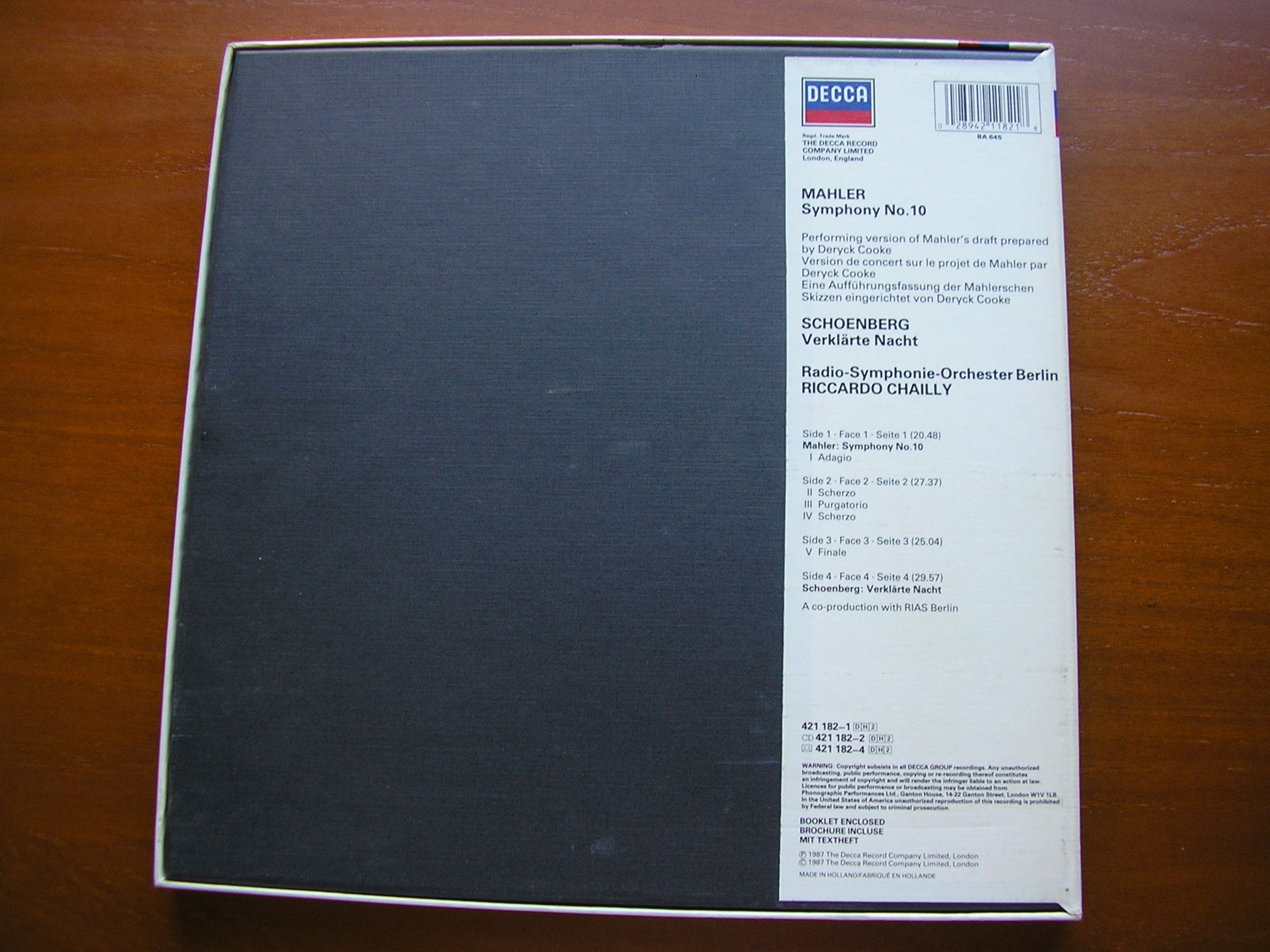 421 182  MAHLER: SYMPHONY No. 10 / SCHOENBERG: VERKLARTE NACHT    RICCARDO CHAILLY / BERLIN RADIO SYMPHONY ORCHESTRA