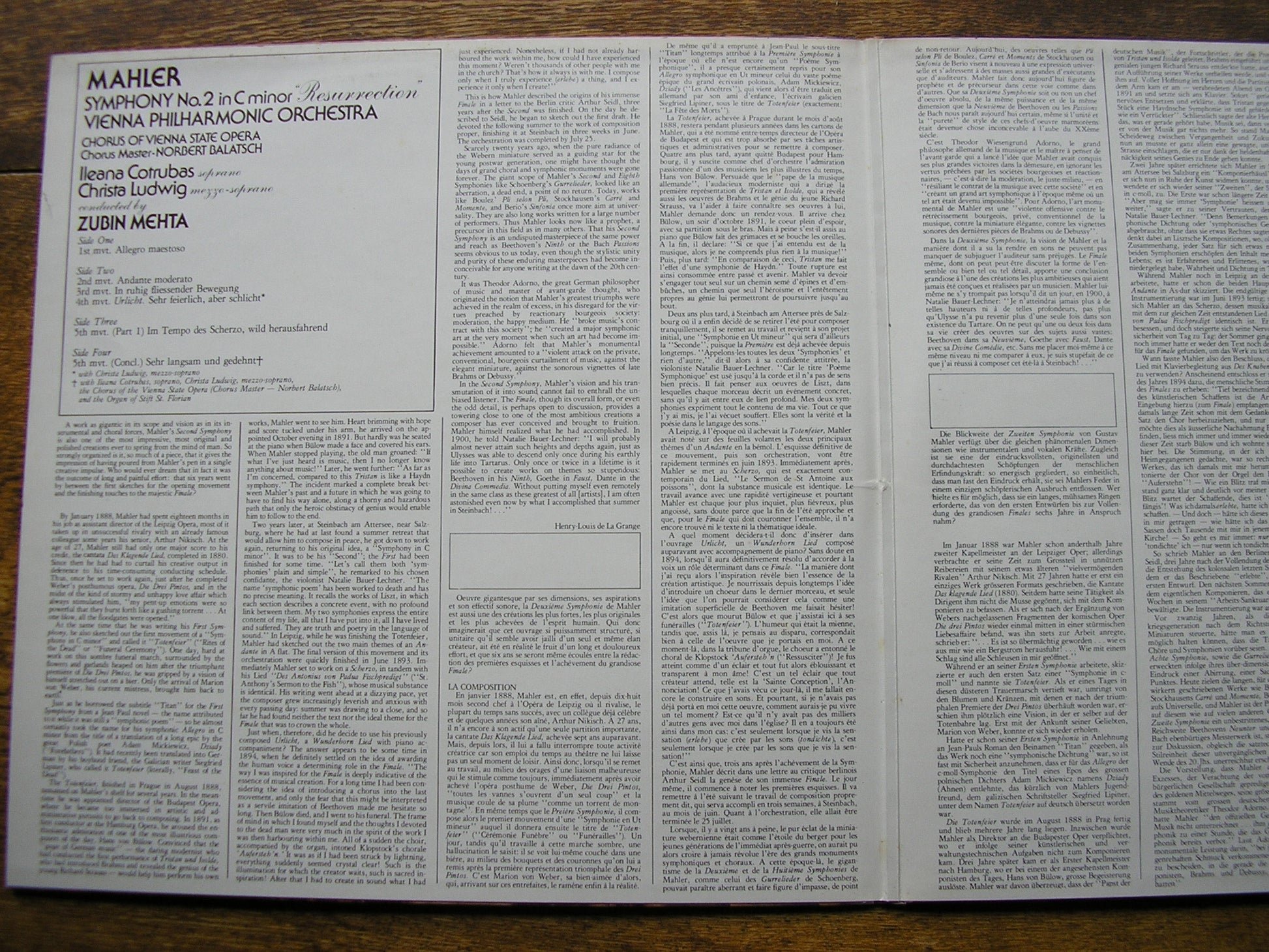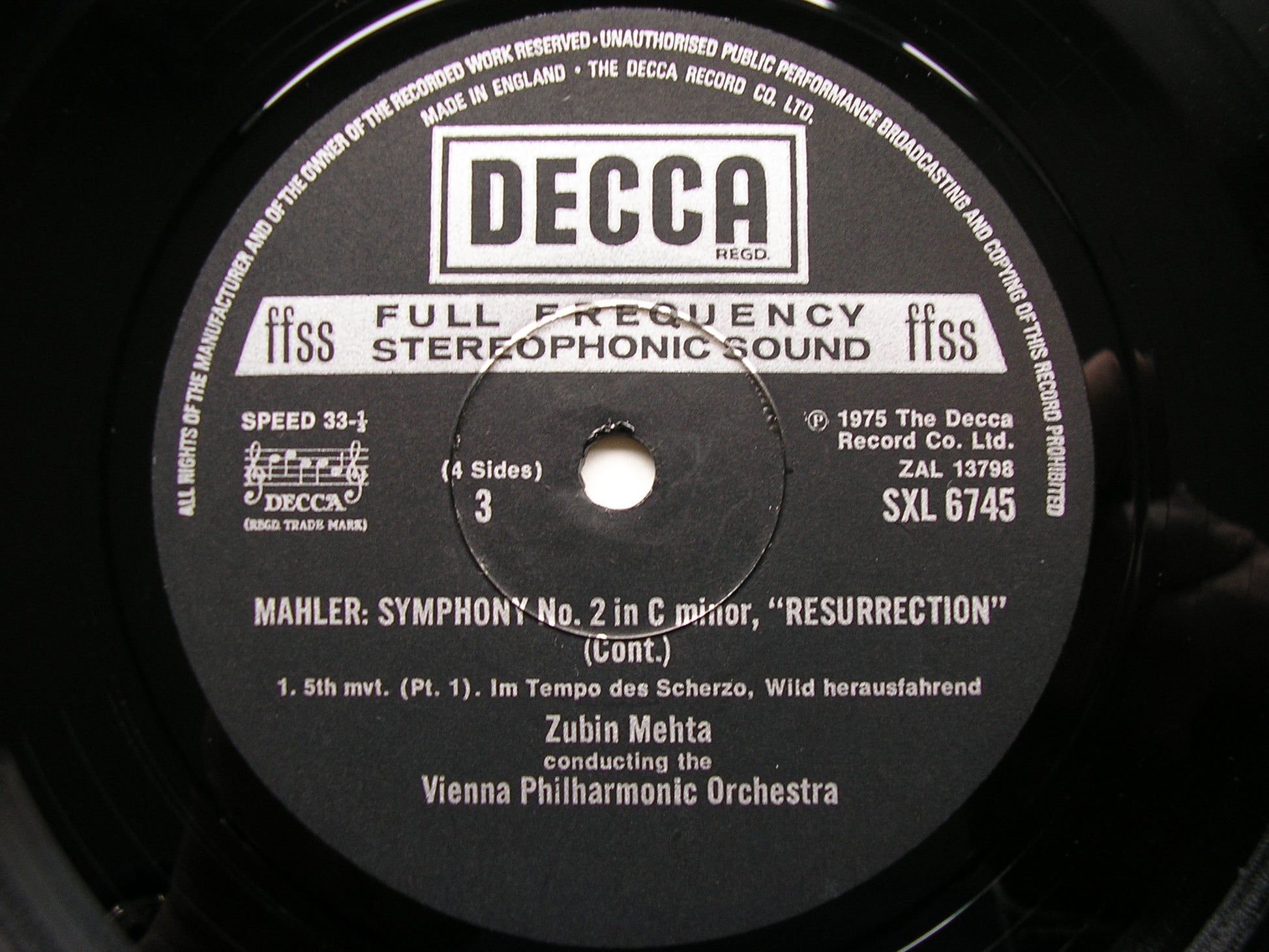 SXL 6744 - 5 MAHLER: SYMPHONY No. 2 'Resurrection' SOLOISTS / VPO / ZUBIN MEHTA