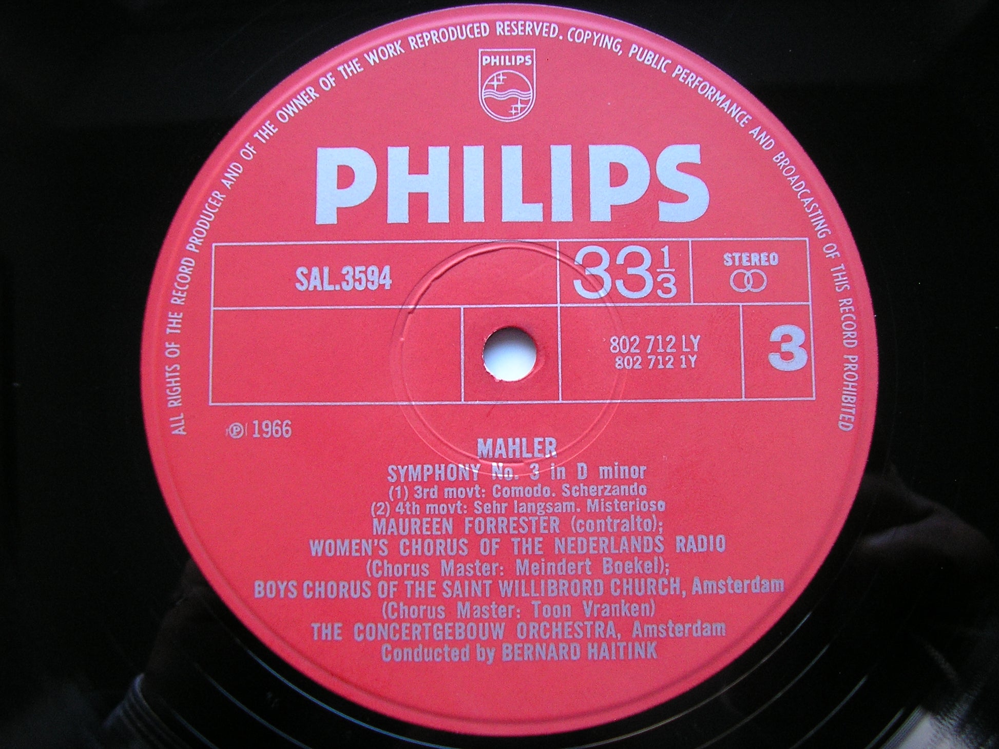 SAL 3593 / 4  MAHLER: SYMPHONY No. 3     MAUREEN FORRESTER / CONCERTGEBOUW ORCHESTRA / BERN ARD HAITINK