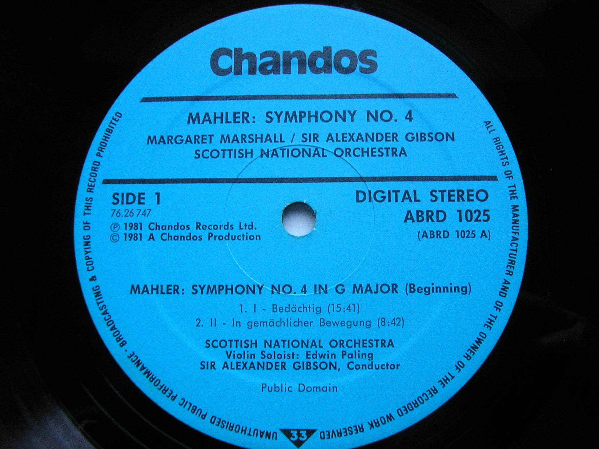 ABRD 1025  MAHLER: SYMPHONY No. 4    MARGARET MARSHALL / SCOTTISH NATIONAL ORCHESTRA / SIR ALEXANDER GIBSON