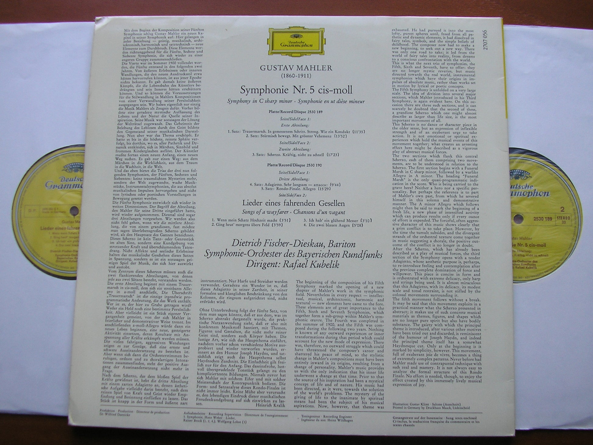 2707 056  MAHLER: SYMPHONY No. 5 / LIEDER EINES FAHRENDEN GESELLEN     DIETRICH FISCHER-DIESKAU / BAVARIAN RADIO SYMPHONY ORCHESTRA / RAFAEL KUBELIK