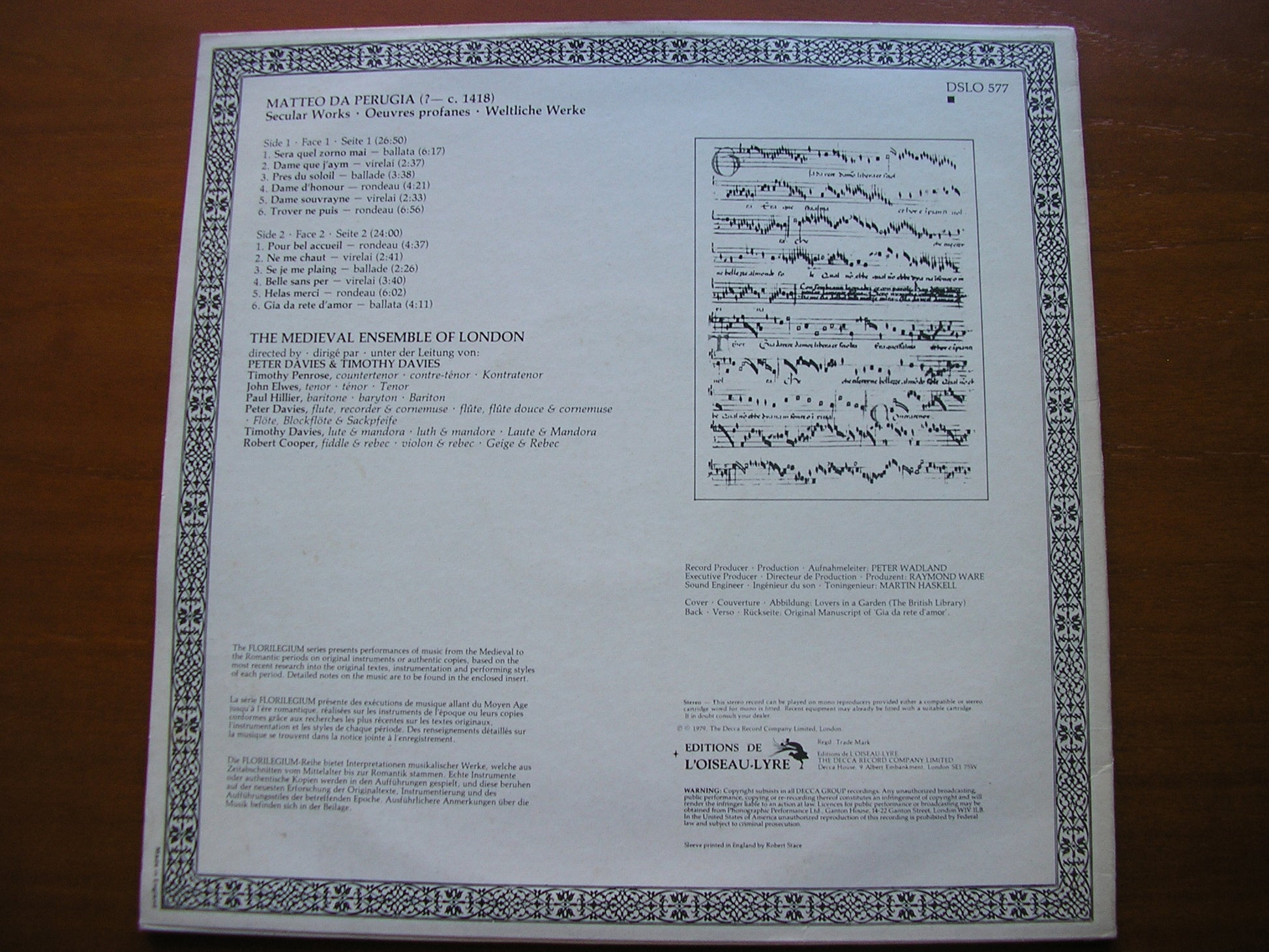 DSLO 577 MATTEO DA PERUGIA: SECULAR WORKS THE MEDIEVAL ENSEMBLE OF LONDON