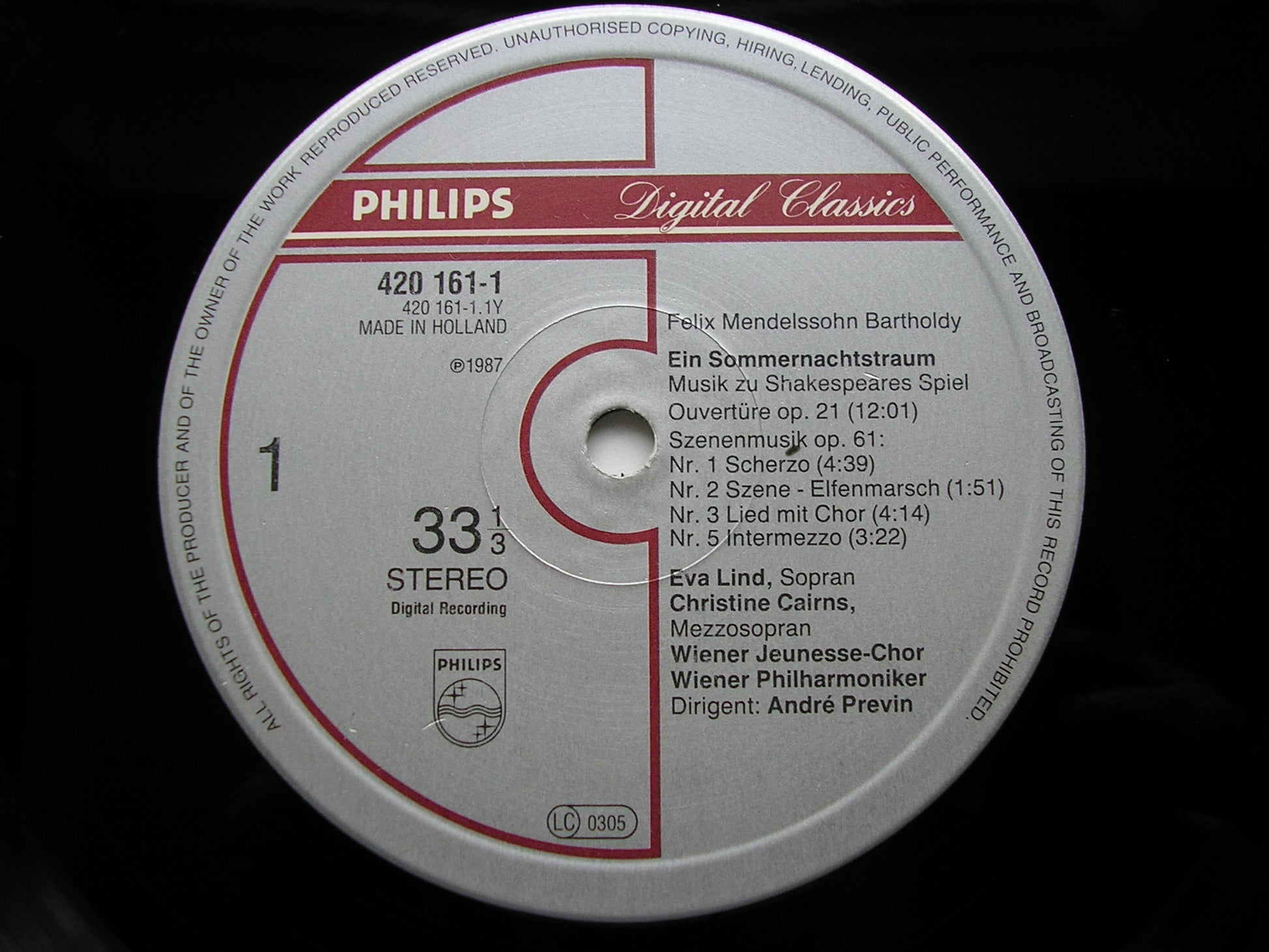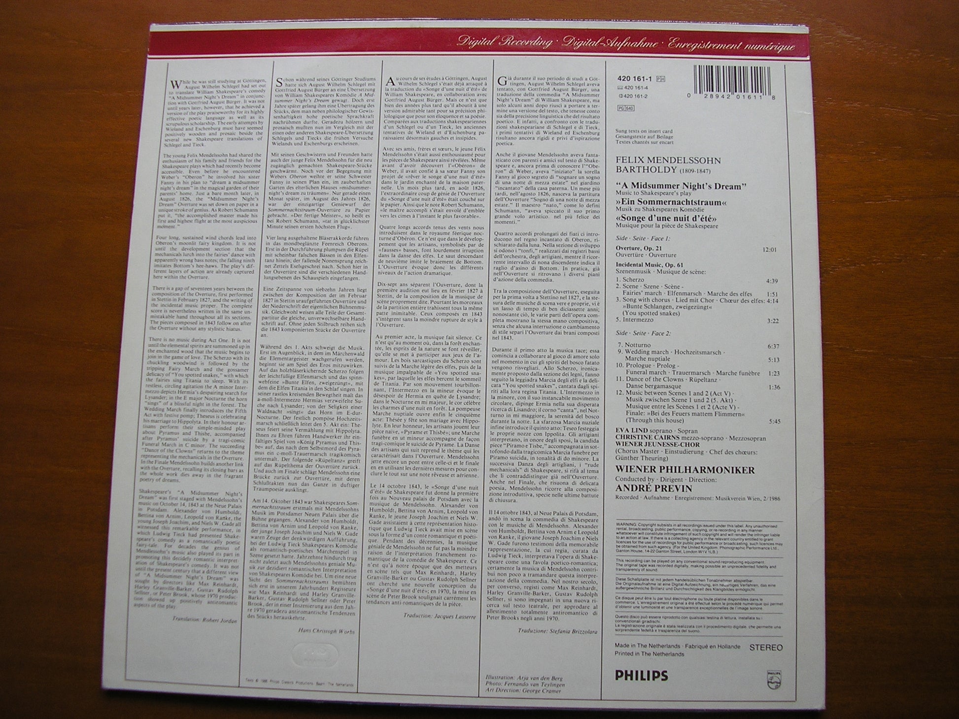 420 161  MENDELSSOHN: A MIDSUMMER NIGHT'S DREAM     EVA LIND / CHRISTINE CAIRNS / VIENNA PHILHARMONIC ORCHESTRA / ANDRE PREVIN