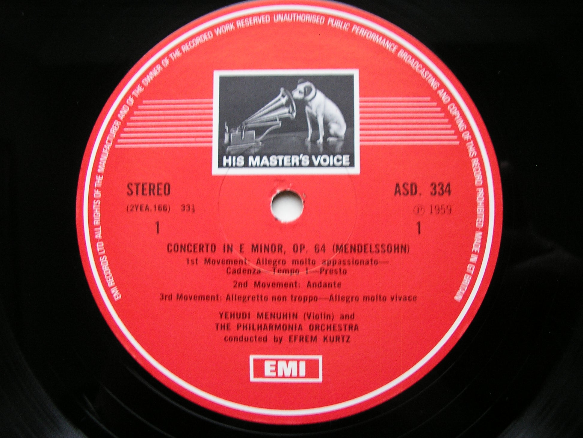 ASD 334  MENDELSSOHN: VIOLIN CONCERTO in E / BRUCH: VIOLIN CONCERTO No. 1    YEHUDI MENUHIN / PHILHARMONIA ORCHESTRA / EFREM KURZ / WALTER SUSSKIND