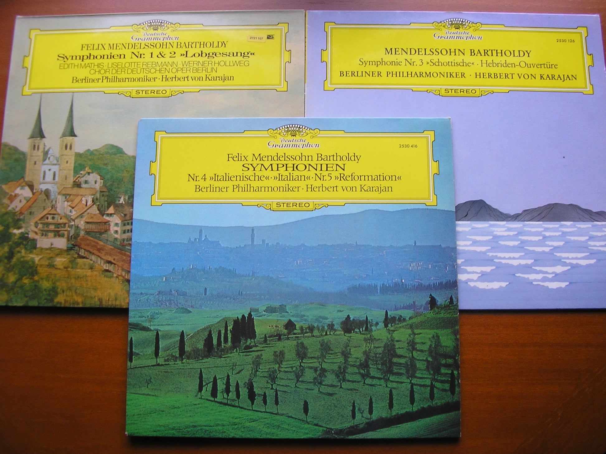 2721 107 / 2530 126 / 2530 416  MENDELSSOHN: THE FIVE SYMPHONIES / OVERTURE The Hebrides     HERBERT VON KARAJAN / BERLIN PHILHARMONIC ORCHESTRA