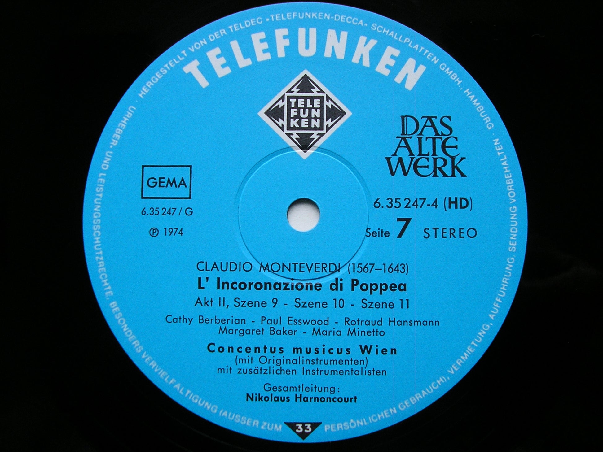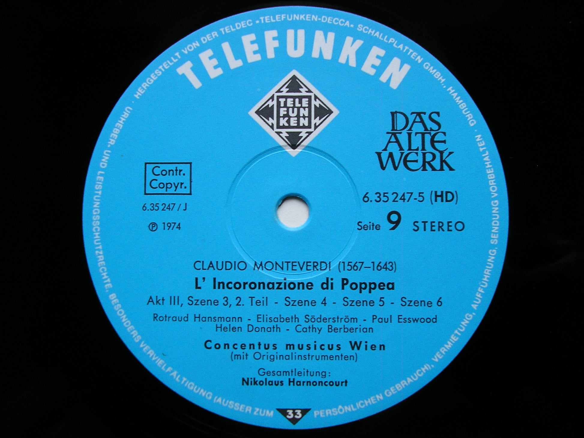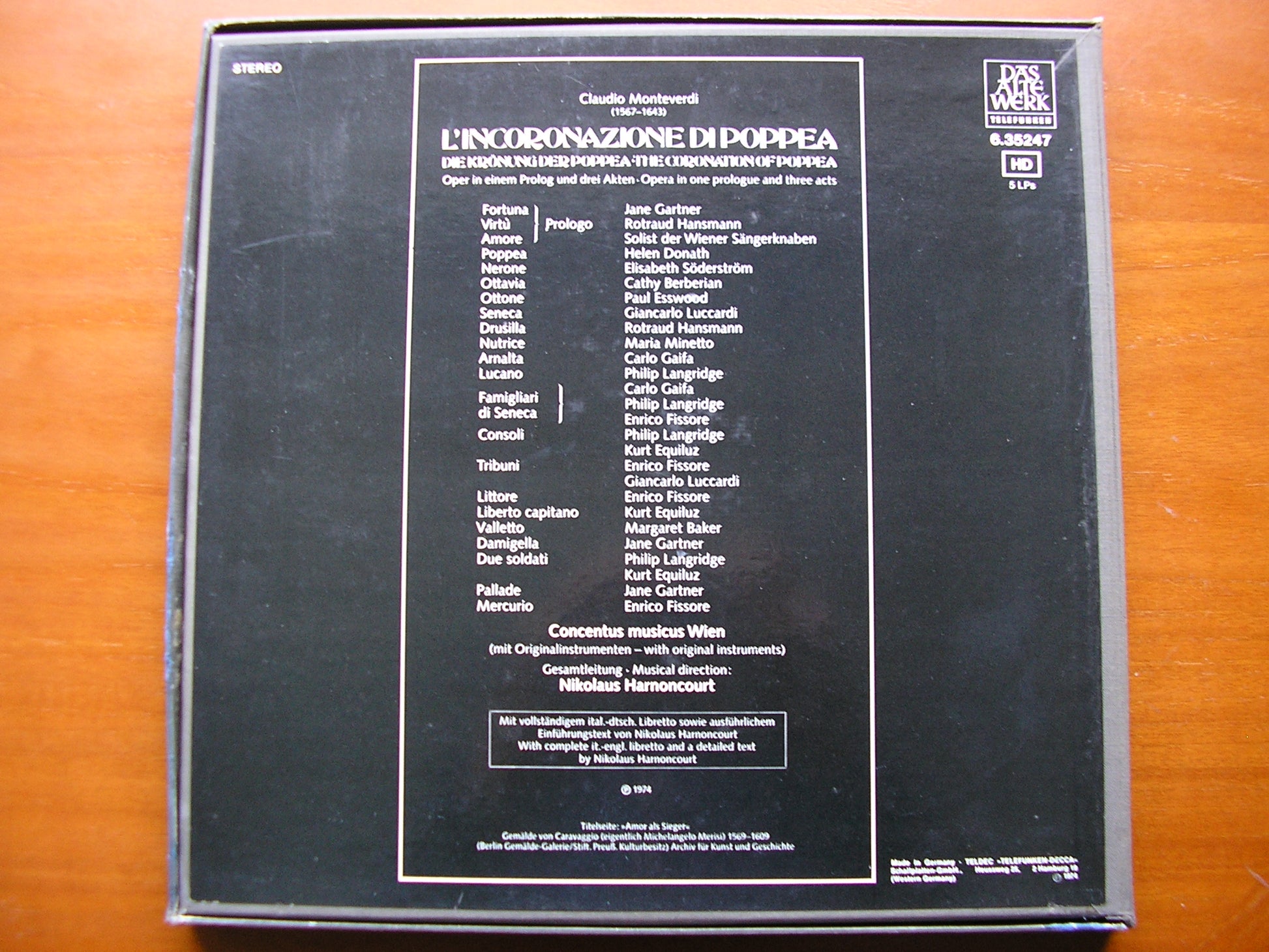 6.35247  MONTEVERDI: THE CORONATION OF POPPEA    HELEN DONATH / ELISABETH SODERSTROM / CATHY BERBERIAN / PAUL ESSWOOD     CONCENTUS MUSICUS VIENNA / NIKOLAUS HARNONCOURT