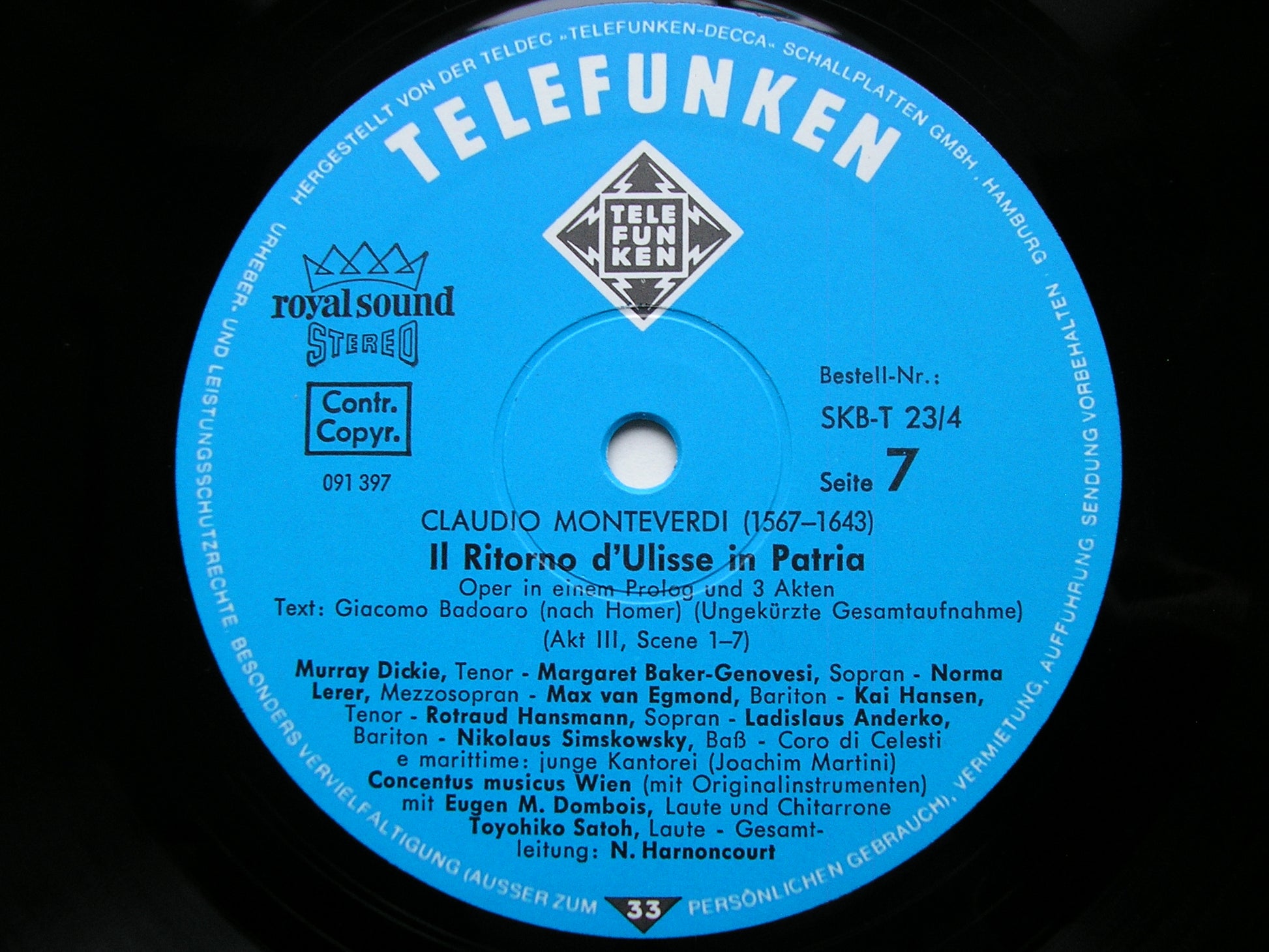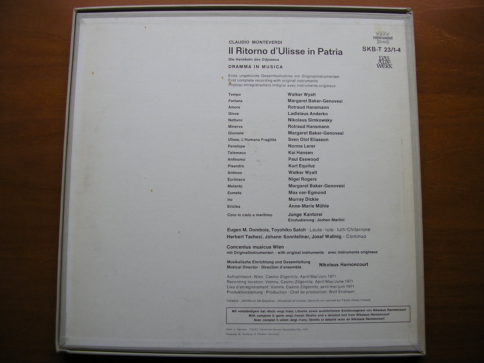 SKB-T 23 / 1-4  MONTEVERDI: THE RETURN OF ULYSSES     SOLOISTS / CONCENTUS MUSICUS VIENNA / NIKOLAUS HARNONCOURT