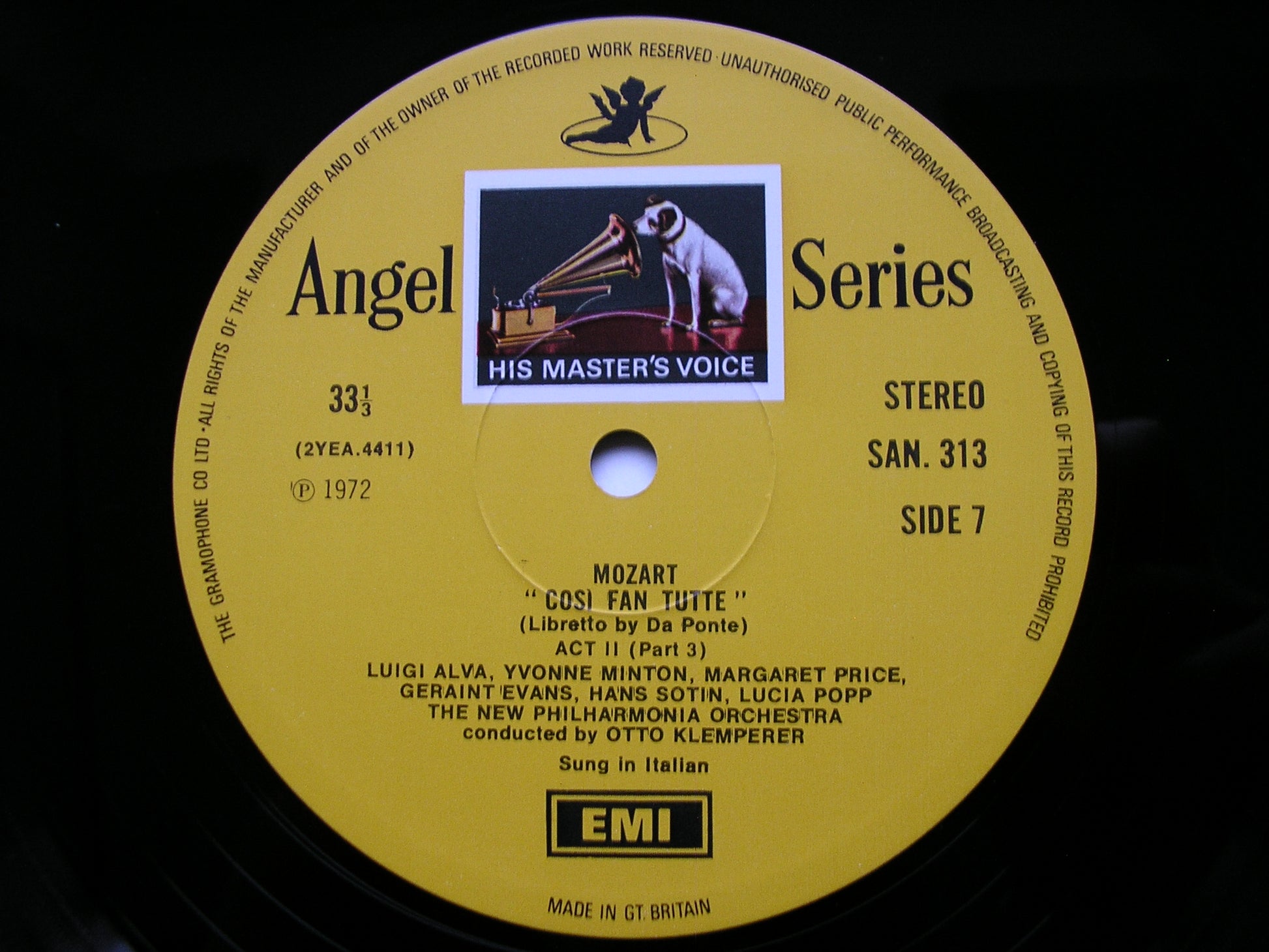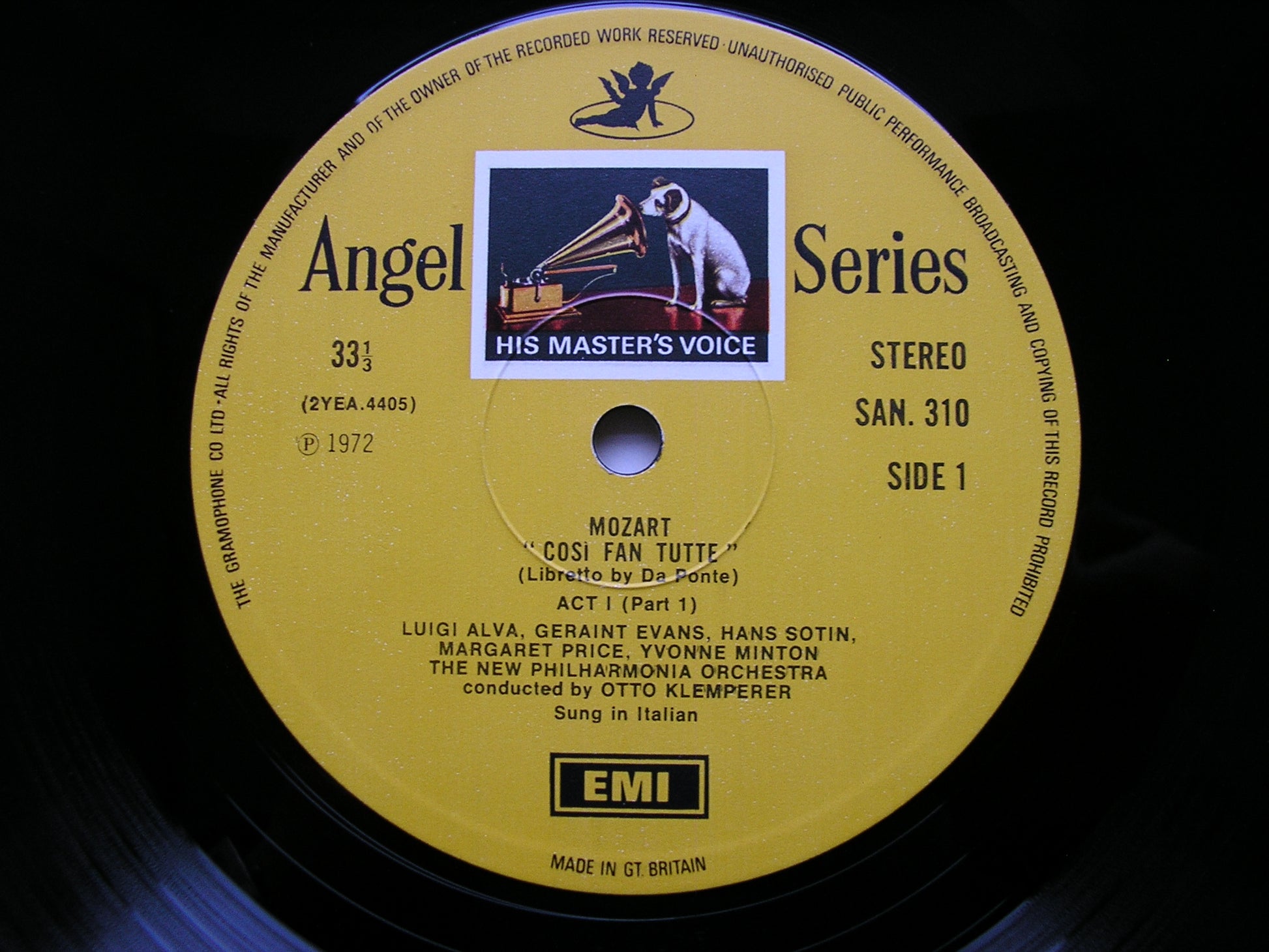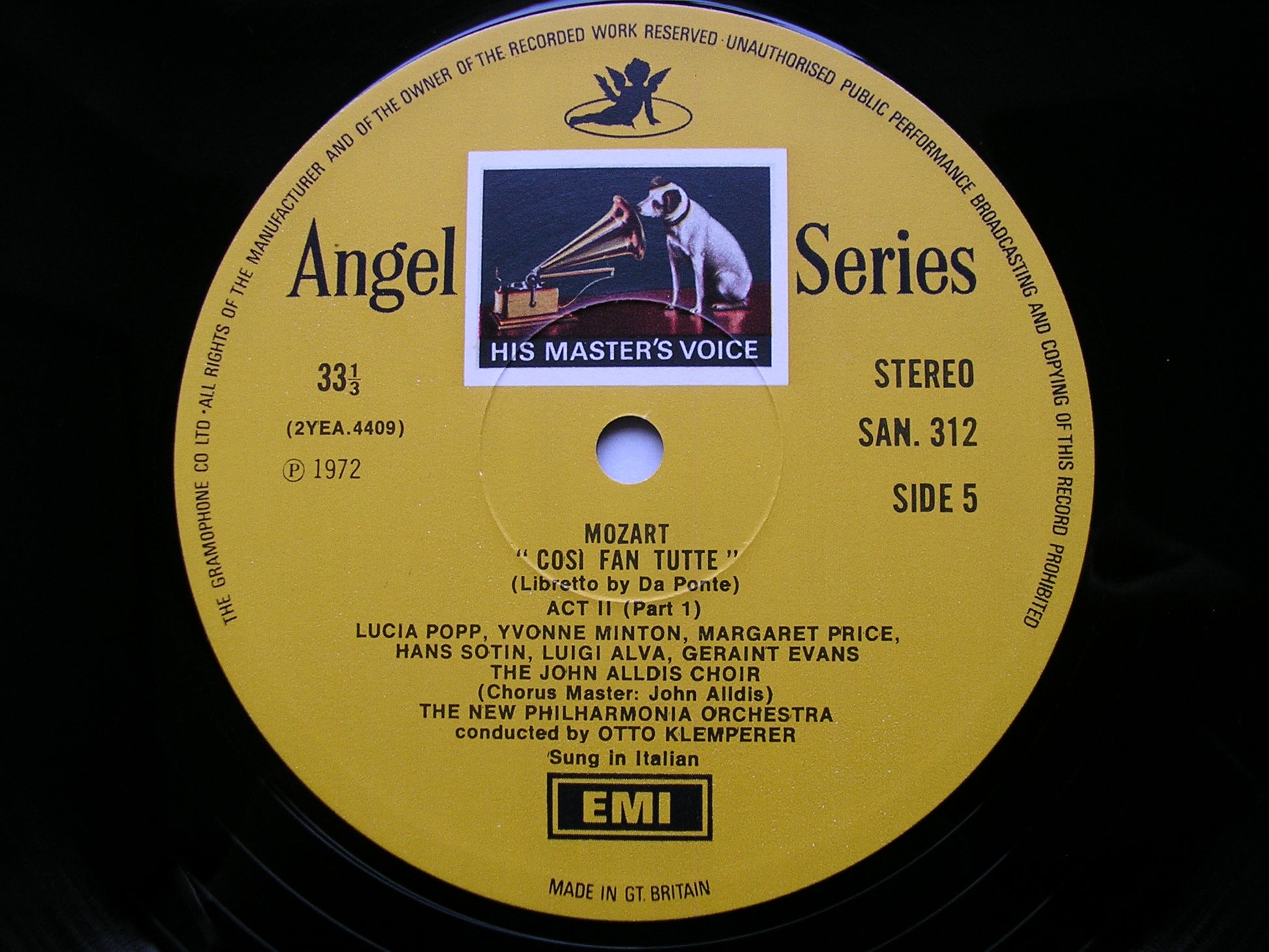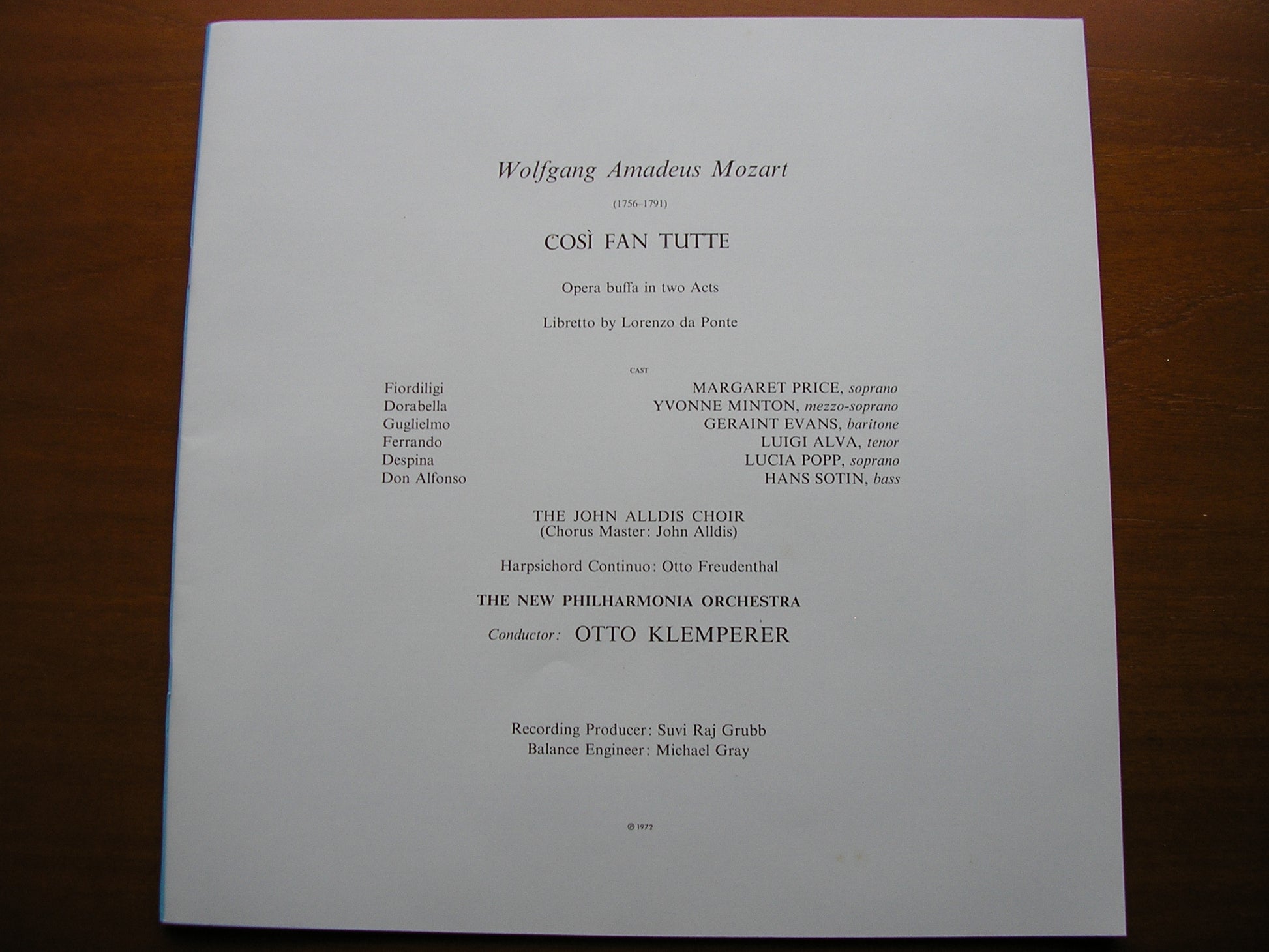 SLS 961 (SAN 310 - 313)  MOZART: COSI FAN TUTTE    MARGARET PRICE / YVONNE MINTON / LUCIA POPP / LUIGI ALVA / GERAINT EVANS / HANS SOTIN / NEW PHILHARMONIA ORCHESTRA / OTTO KLEMPERER