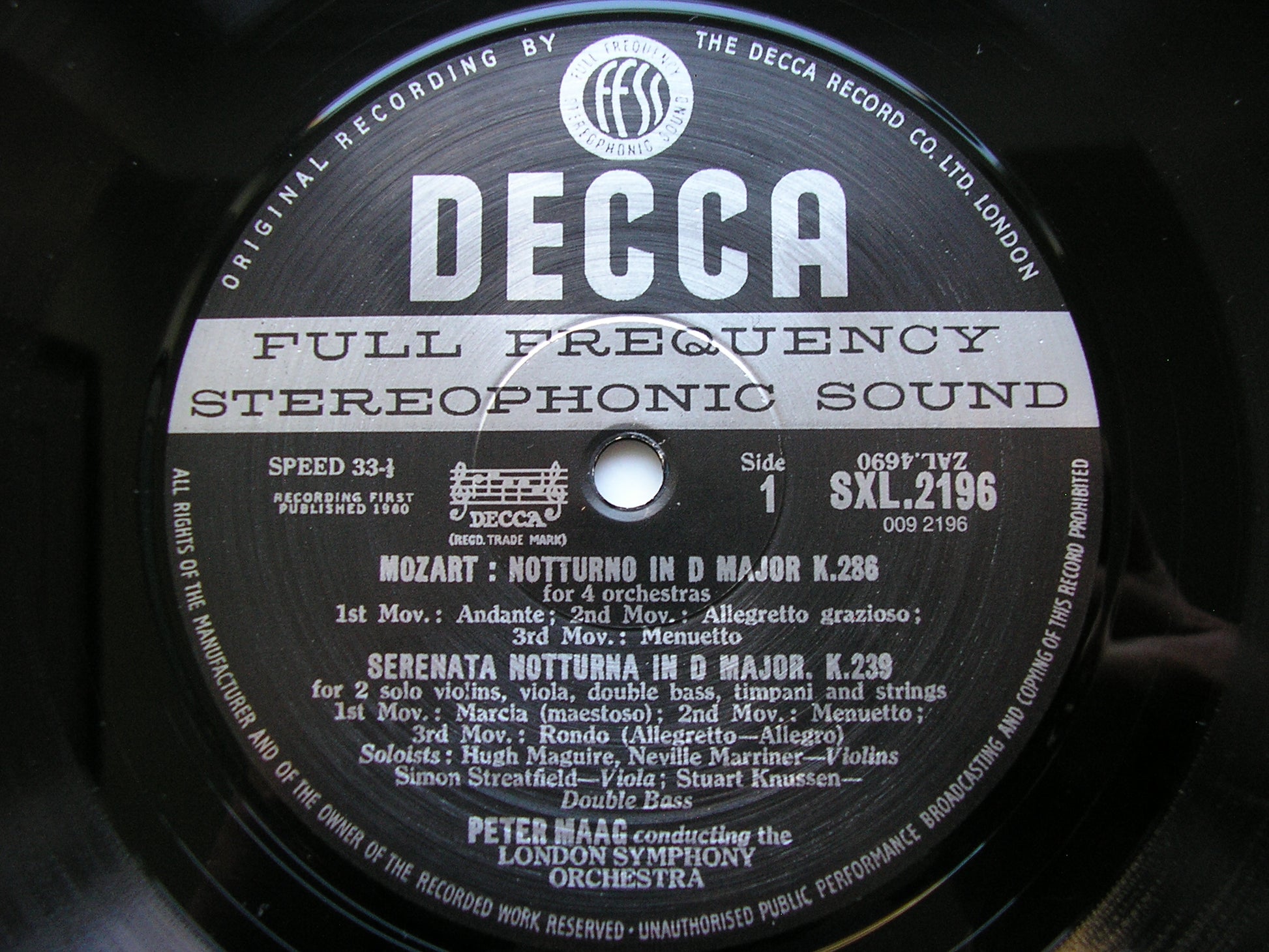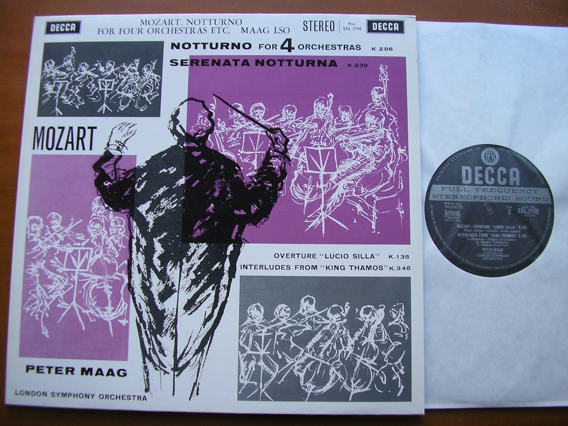SXL 2196  MOZART: NOTTURNO FOR 4 ORCHESTRAS / SERENATA NOTTURNA / OVERTURE Lucio Silla / THAMOS Interludes      PETER MAAG / LONDON SYMPHONY ORCHESTRA