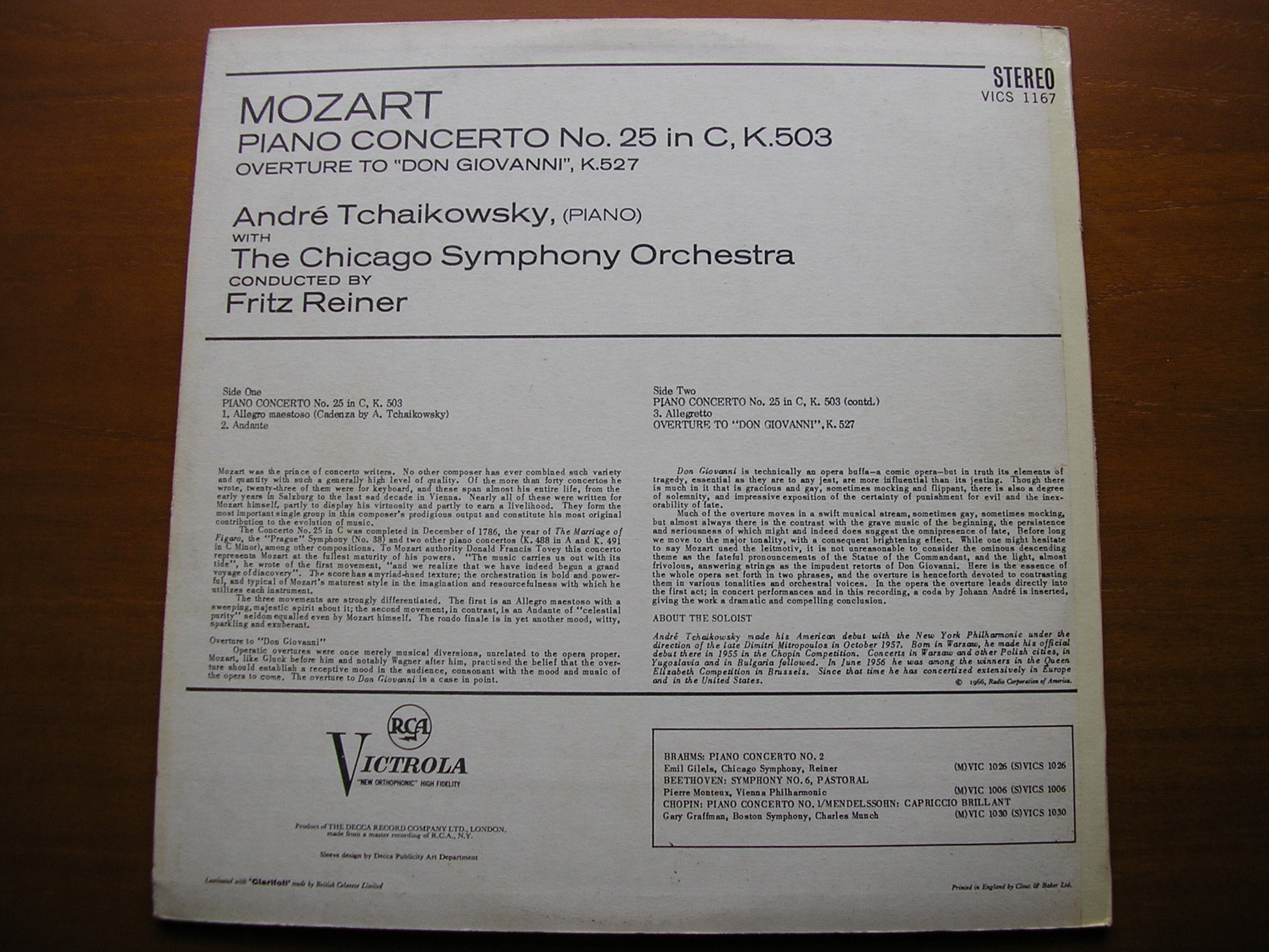 VICS 1167  MOZART: PIANO CONCERTO No. 25 / OVERTURE Don Giovanni    ANDRE TCHAIKOWSKY / CHICAGO SYMPHONY ORCHESTRA / FRITZ REINER