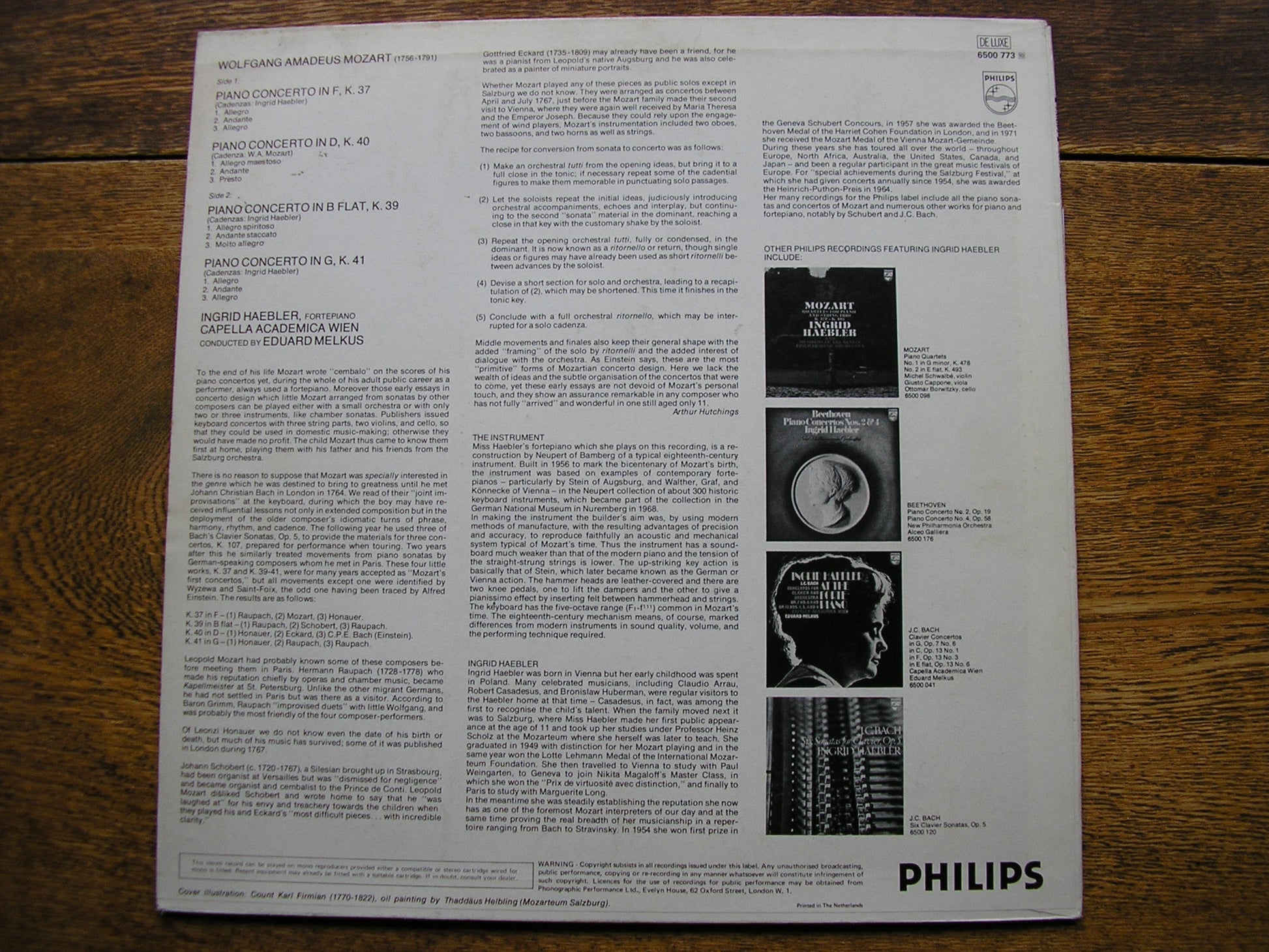 HAEBLER PERFORMS THESE 4 CONCERTOS BY THE 11 YEAR OLD MOZART ON A FORTEPIANO BUILT IN 1956 BY NEUPART OF BAMBERG