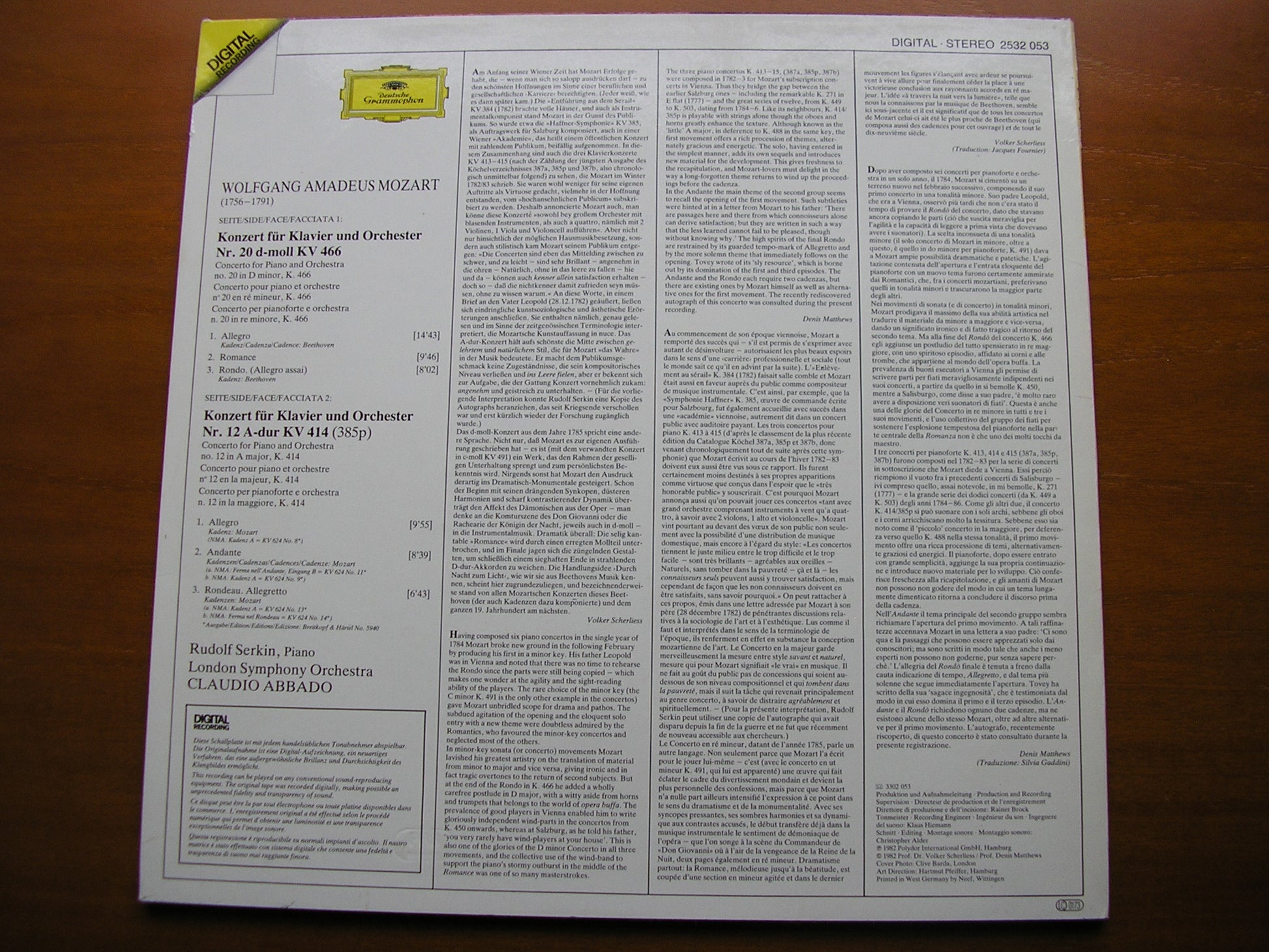 MOZART: PIANO CONCERTOS Nos. 12 & 20 SERKIN / LONDON SYMPHONY / ABBADO 2532 053