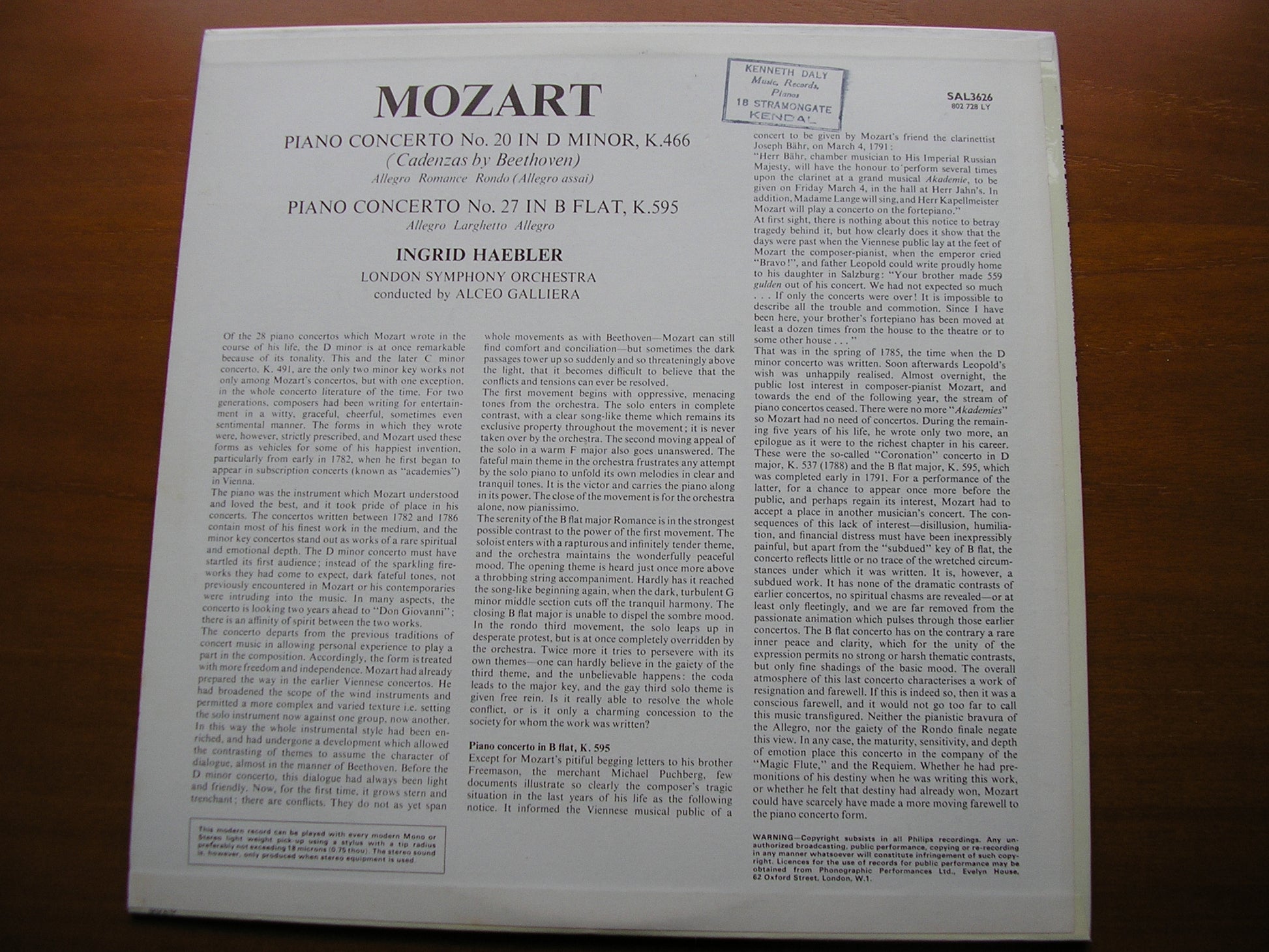SAL 3626  MOZART: PIANO CONCERTOS K466 & K595      INGRID HAEBLER / LONDON SYMPHONY ORCHESTRA / ALCEO GALLIERA
