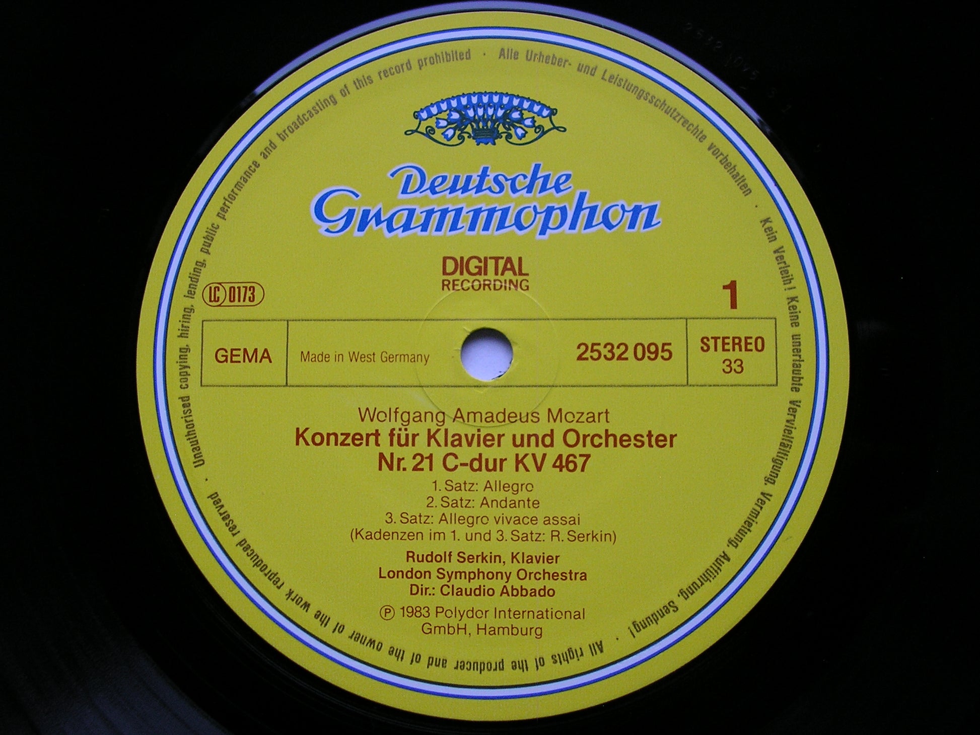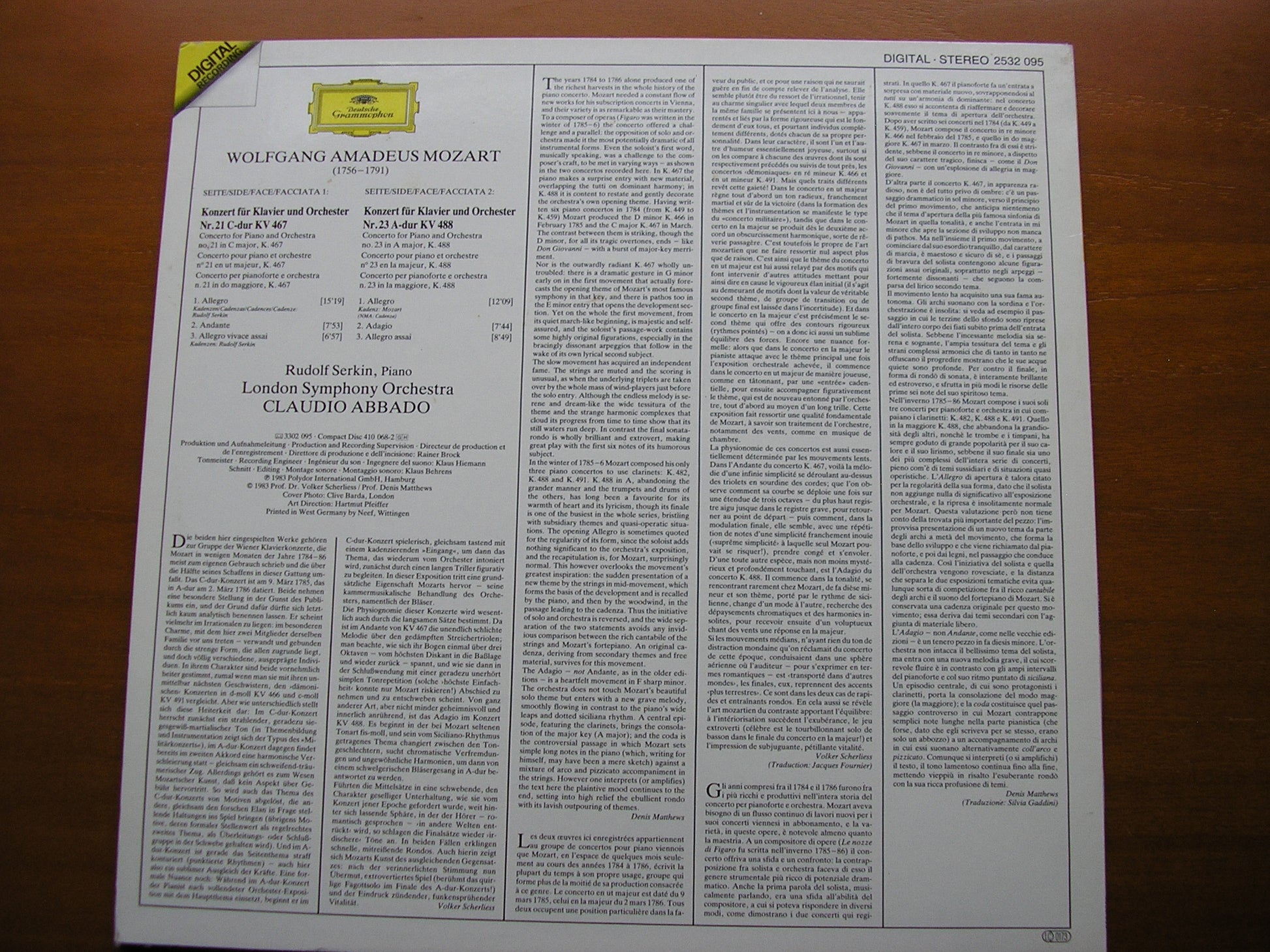 2532 095  MOZART: PIANO CONCERTOS K467 & K488     RUDOLF SERKIN / LONDON SYMPHONY ORCHESTRA / CLAUDIO ABBADO