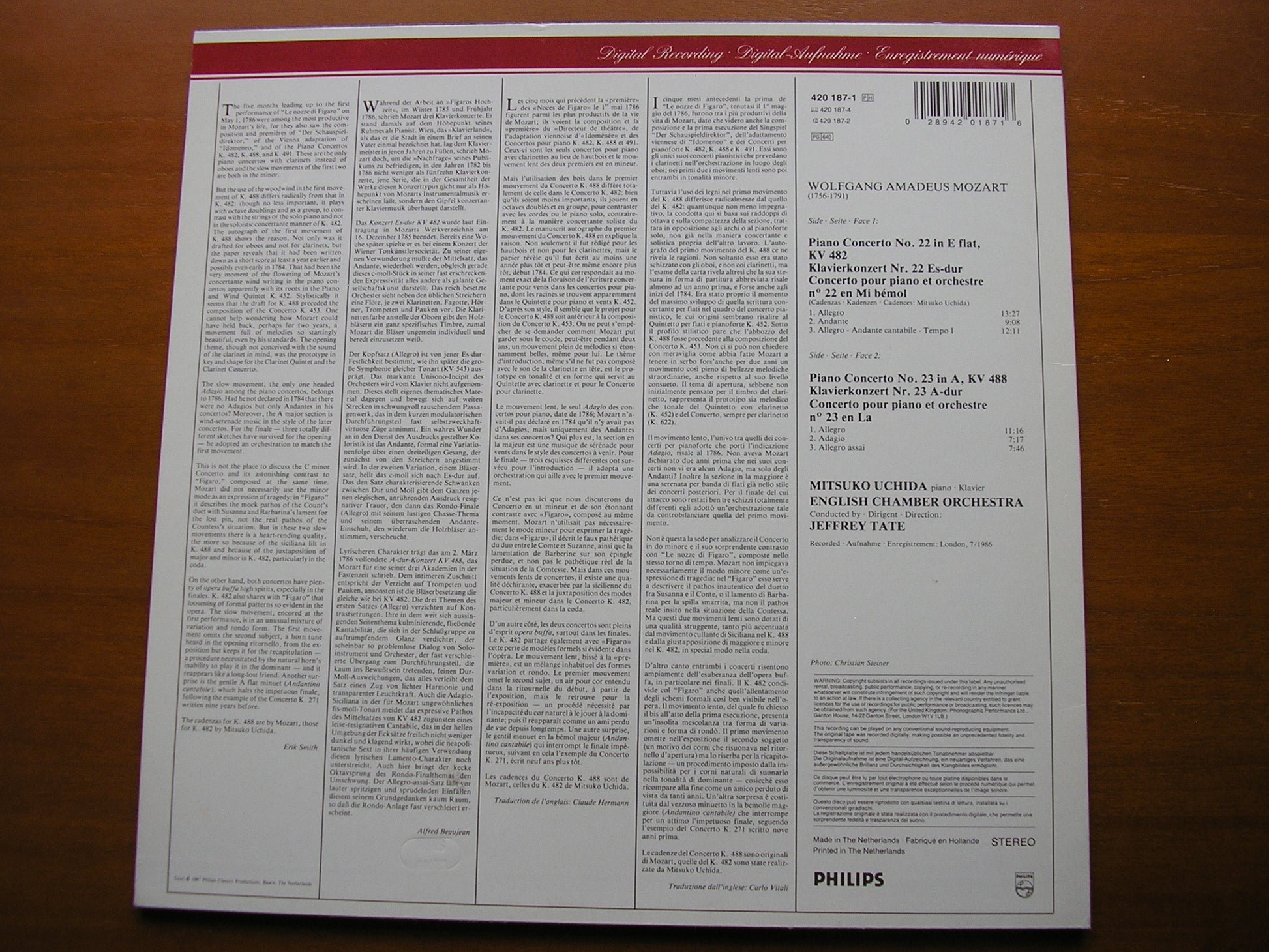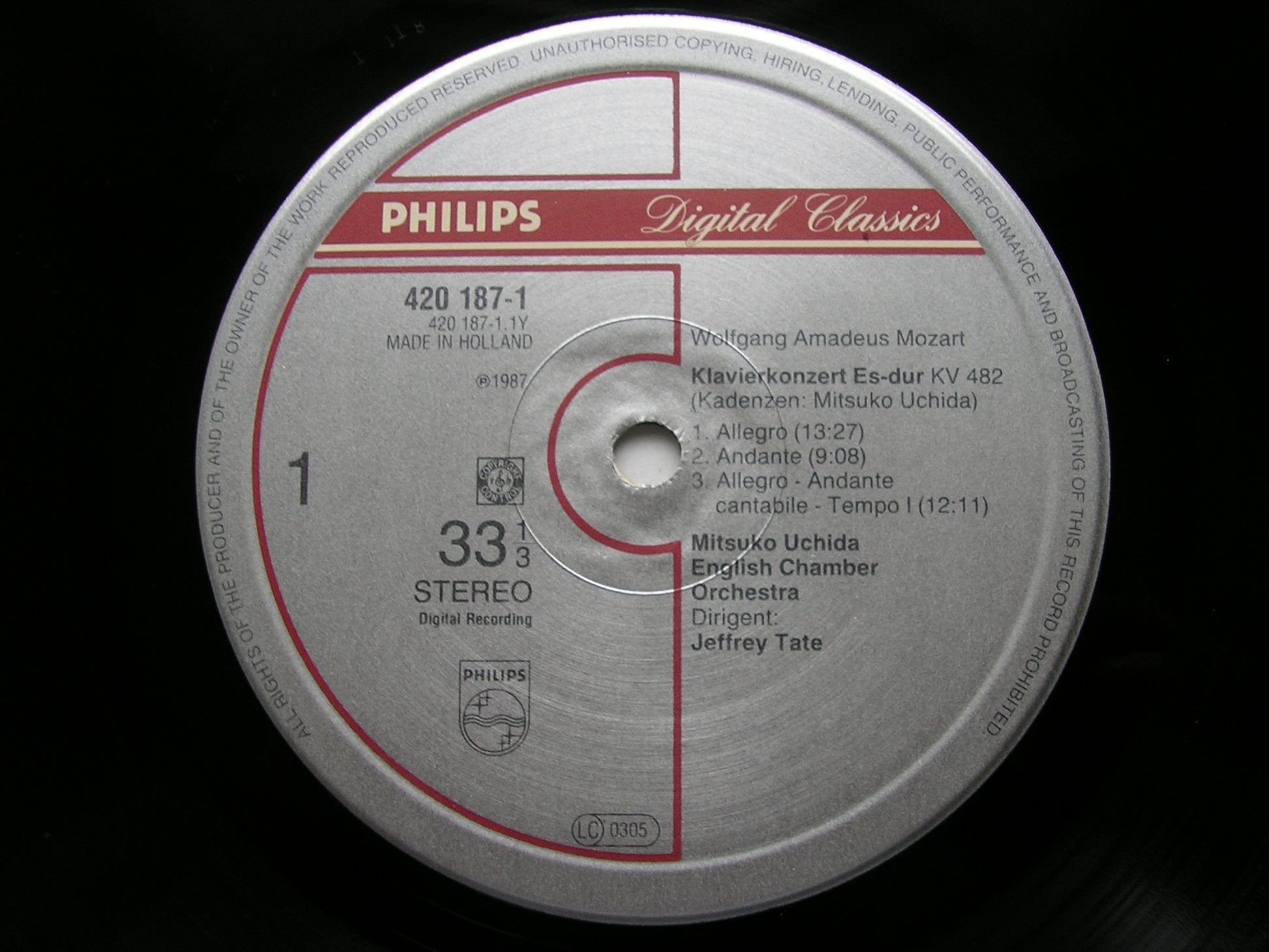 420 187  MOZART: PIANO CONCERTOS K482 & K488      MITSUKO UCHIDA / ENGLISH CHAMBER ORCHESTRA / JEFFREY TATE
