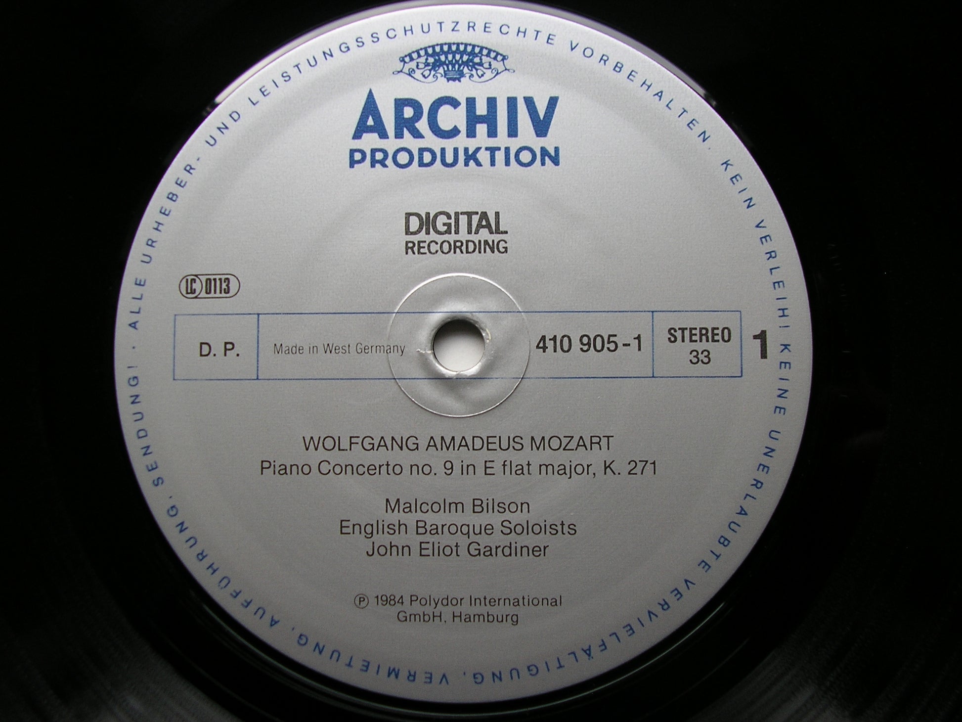 410 905  MOZART: PIANO CONCERTOS K271 & K413        MALCOLM BILSON / ENGLISH BAROQUE SOLOISTS / JOHN ELIOT GARDINER