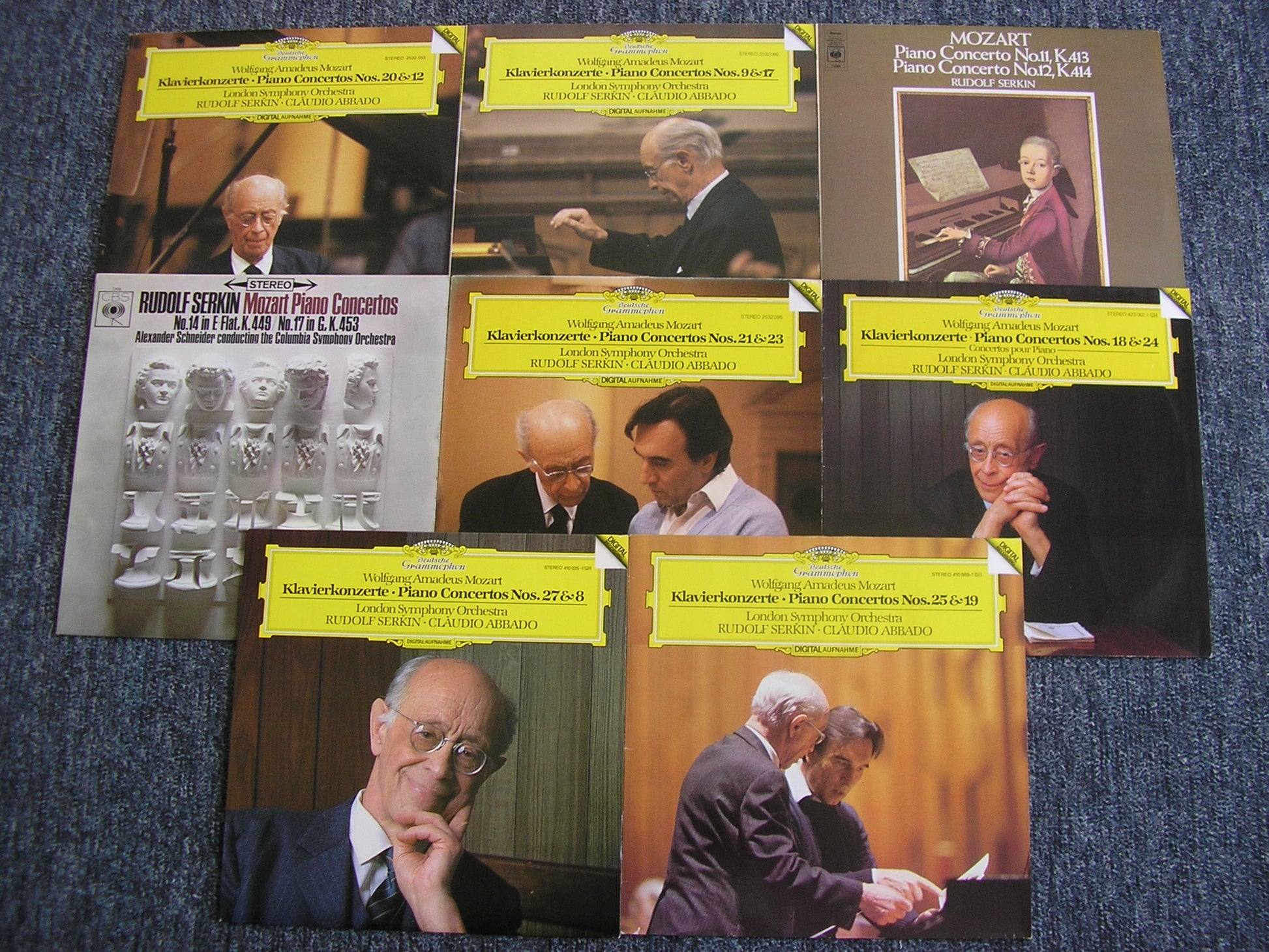 2532 053 / 060 / 095 / 410 035 / 989 / 423 062 / CBS 72436 / 73084   MOZART: PIANO CONCERTOS Nos. 8 / 9 / 11 / 12 / 14 / 17 / 18 / 19 / 20 / 21 / 23 / 24 / 25 / 27      RUDOLF SERKIN / LONDON SYMPHONY ORCHESTRA / CLAUDIO ABBADO / MARLBORO FESTIVAL ORCHESTRA / COLUMBIA SYMPHONY / ALEXANDER SCHNEIDER