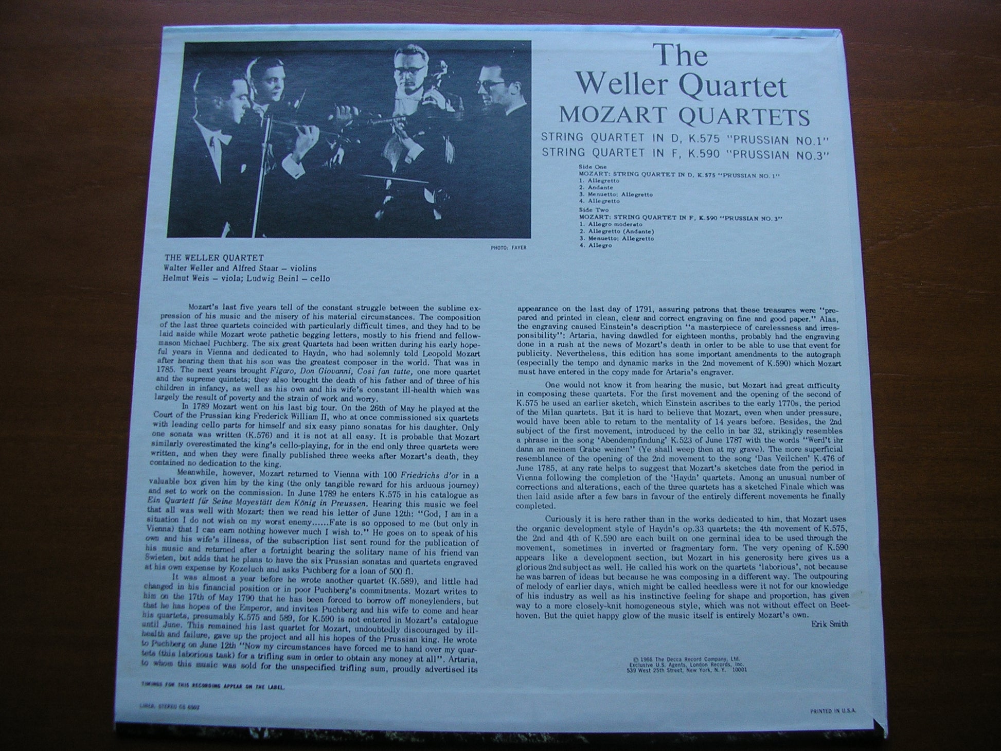 MOZART: STRING QUARTETS K575 in D & K590 in F THE WELLER QUARTET CS 6502