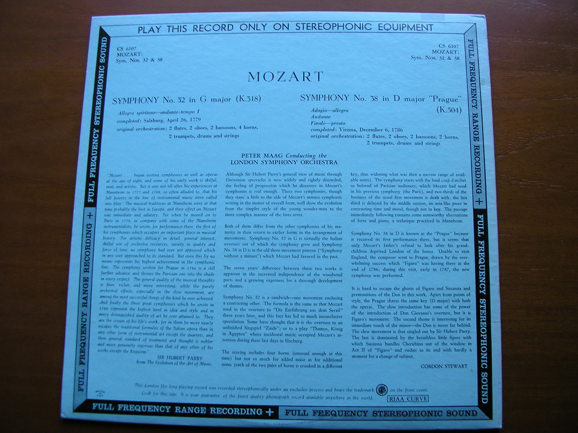 CS 6107  MOZART: SYMPHONIES Nos. 32 & 38     PETER MAAG / LONDON SYMPHONY ORCHESTRA