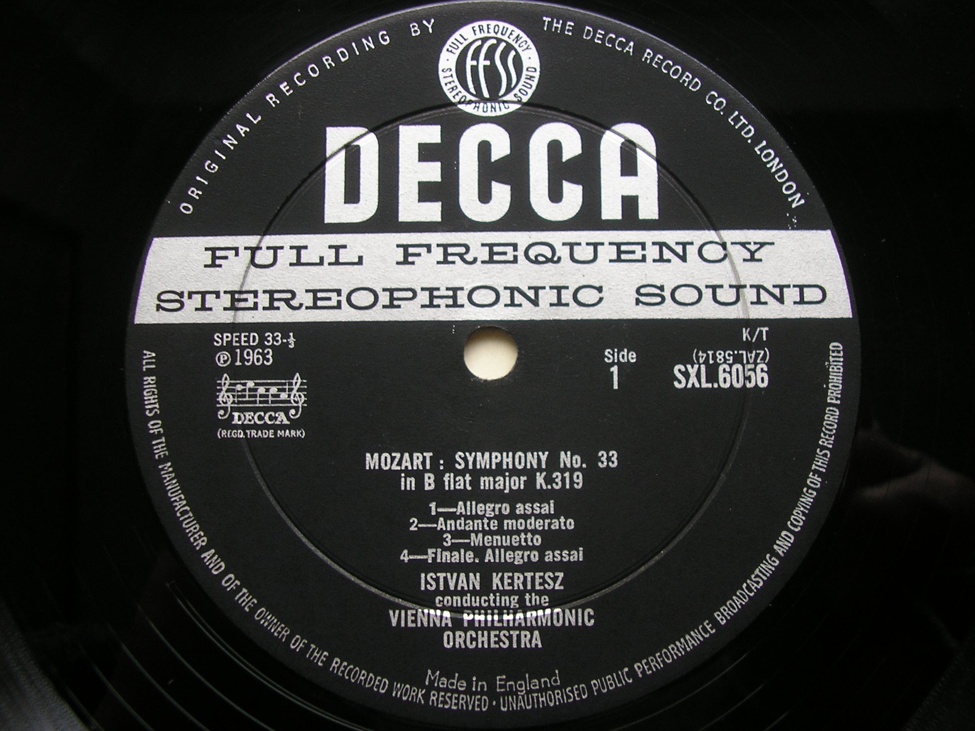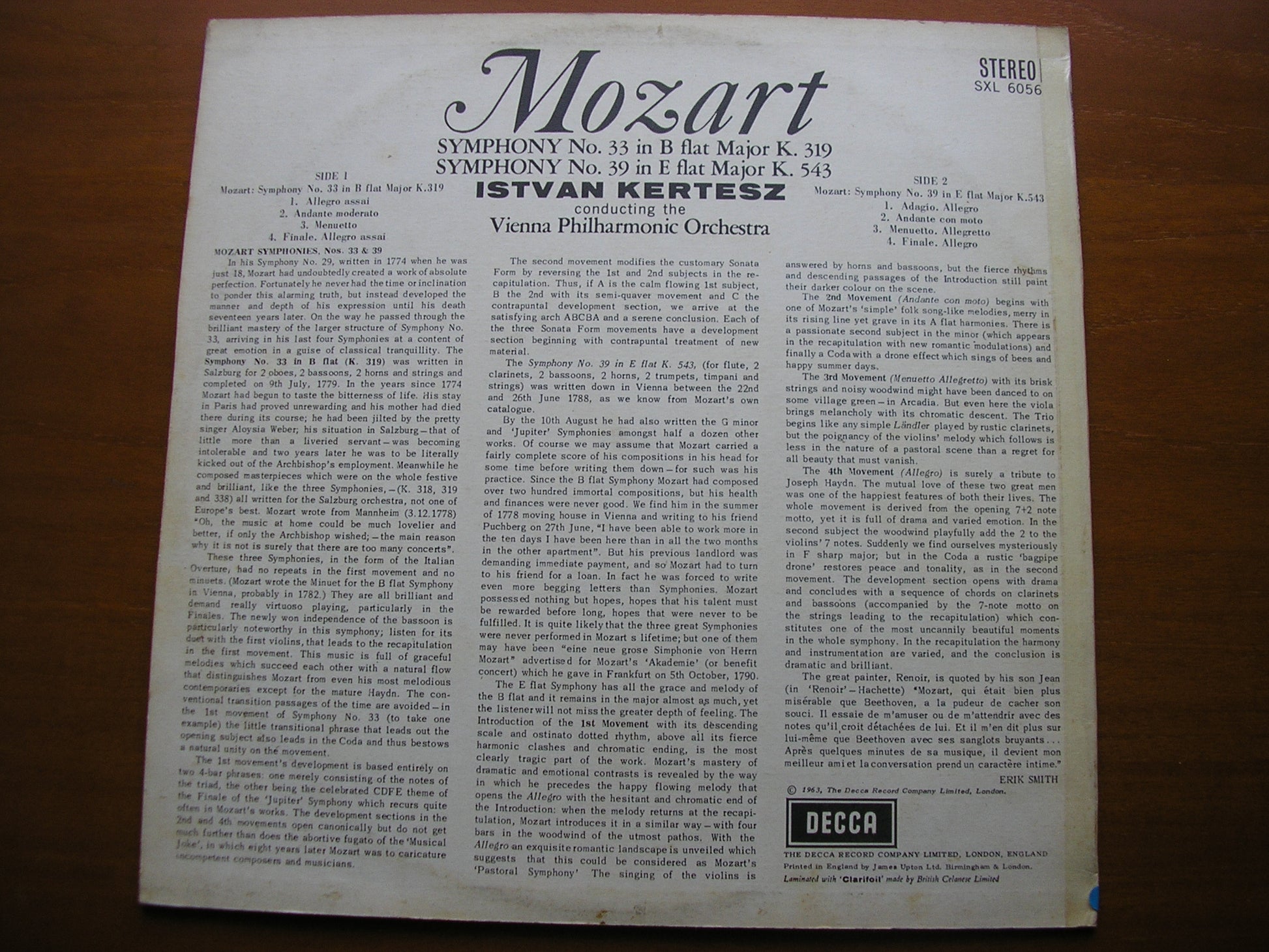 SXL 6056  MOZART: SYMPHONIES Nos. 33 & 39     ISTVAN KERTESZ / VIENNA PHILHARMONIC ORCHESTRA